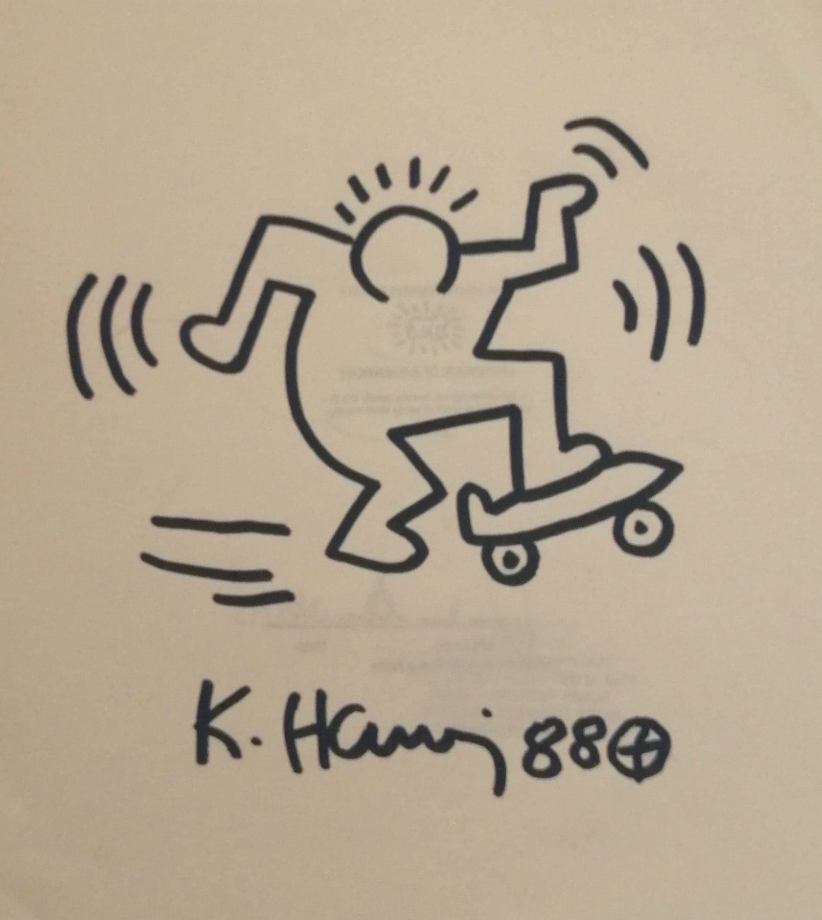 A drawing of a man on a skate board by graffiti artist Keith Haring.