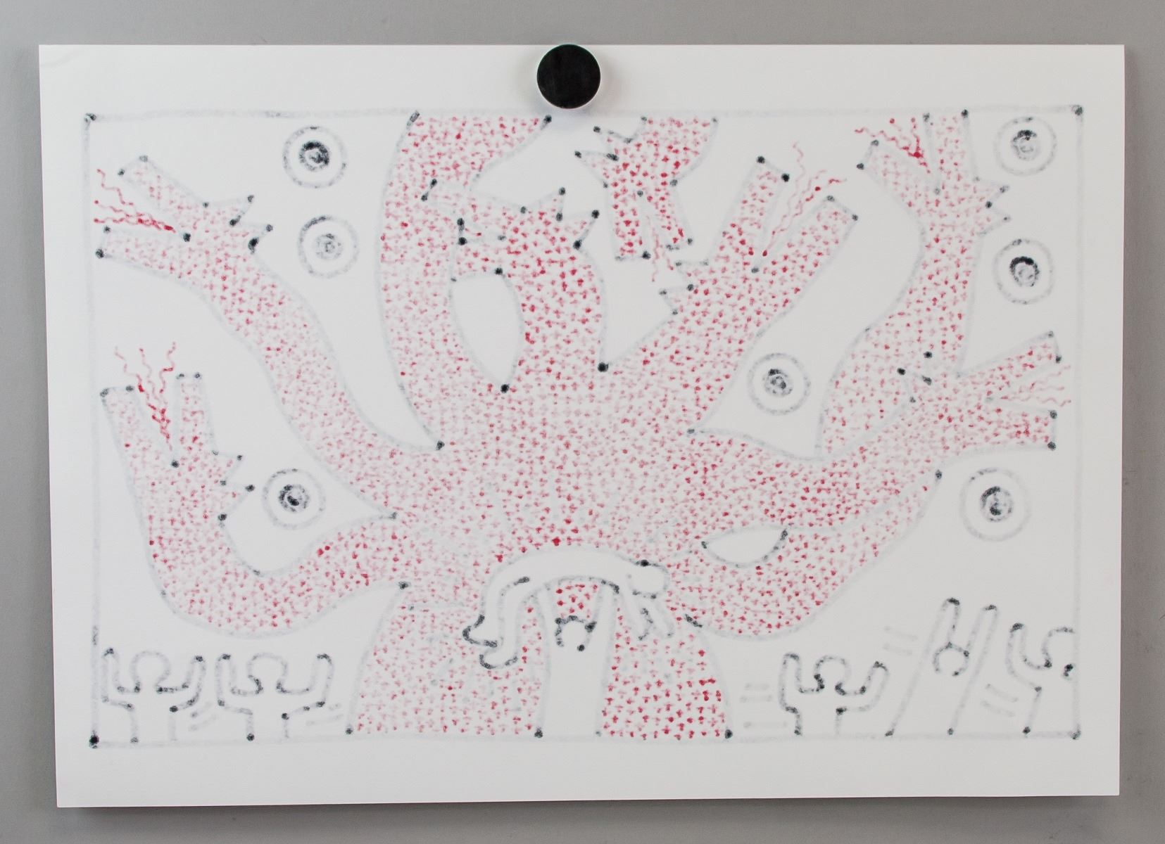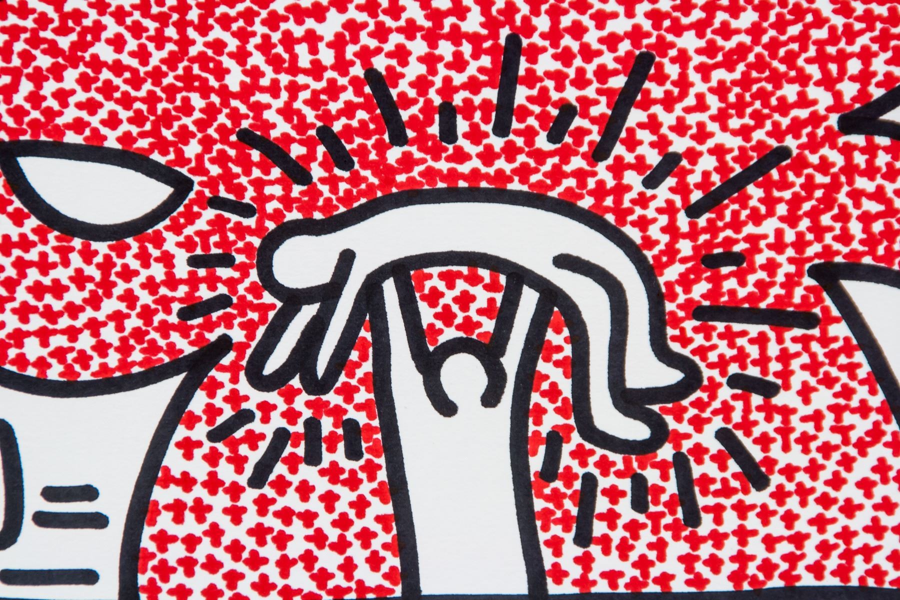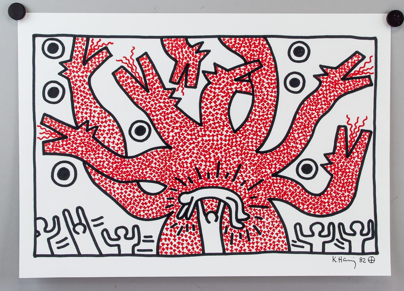 Marker on paper. Featuring a chimera-like creature with a figure being held up sacrificially surrounded by other celebrating figures. Signed K Haring and inscribed 82 on the lower right corner. Attributed to Keith Haring (American, 1958-1990). 29.5 x 42 cm (11.6 x 16.5 inches). PROVENANCE: Upper New York estate