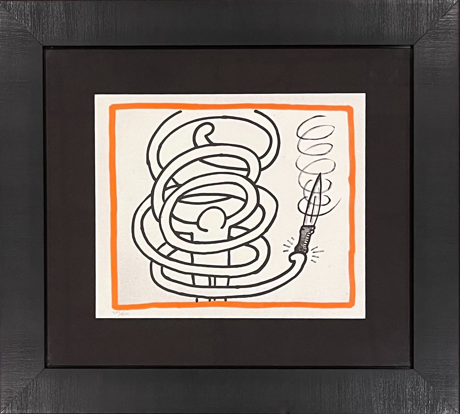 Keith Haring (1958- 1990) lithograph, "AGAINST ALL ODDS" edition 388/500. Published Bébert publishing house, 1990. Keith Haring estate COA on verso. Sheet size 9 x 10.5 in, framed 19.25 x 21 inches. Sheet and frame in excellent condition.