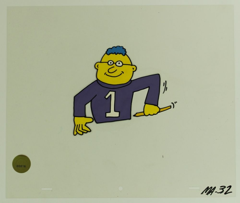 This cel was part of a cartoon entitled "1-10" created for children's television workship in 1991 and aired on "Sesame Street". The cel was created before Keith Haring's death in 1990.