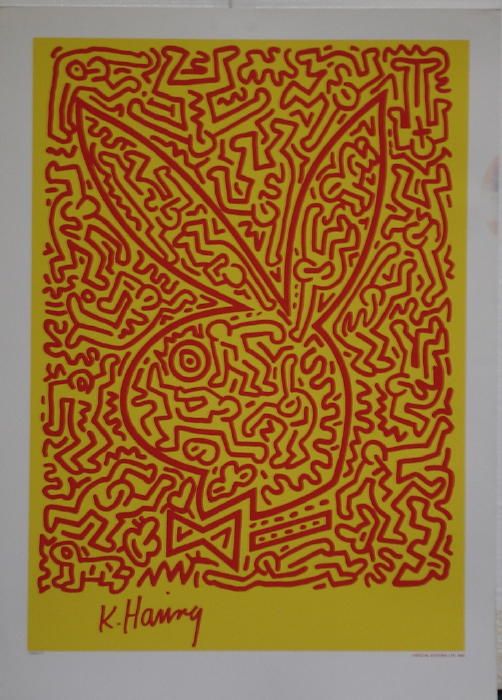 23x32 in. serigraph made from the original painting, signed in the plate. Published in 1990 by Playboy Magazine in conjunction with the Haring Estate, ed. 1000. Domestic shipping-$80, International depends upon location.