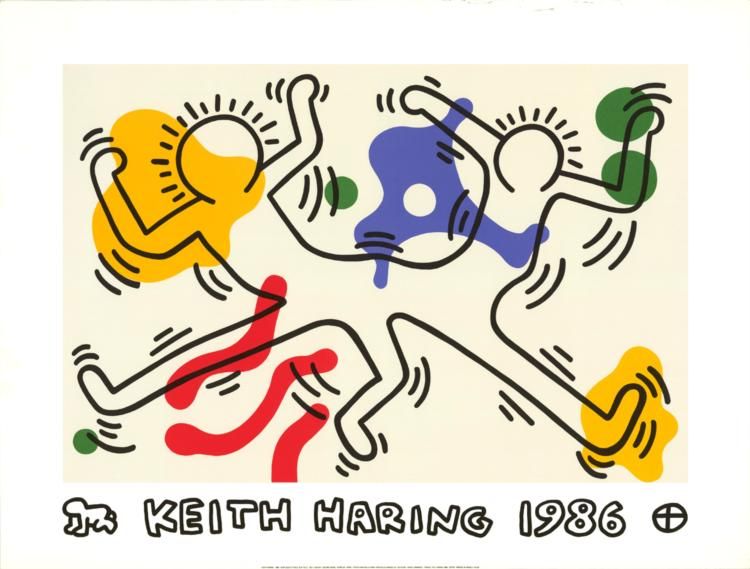 Artist: Keith HaringTitle: Untitled, 1986Medium: PrintSize: 27 1/2" x 36 1/8"Condition: Very good; top edge crinkledBiographyKeith Allen Haring (May 4, 1958 - February 16, 1990) was an artist and social activist whose work responded to the New York City street culture of the 1980s. By expressing concepts of birth, death, sex and war, Haring's imagery has become a widely recognized visual language of the 20th century.Haring achieved his first public attention with public art in subways. These were his first recognized pieces of pop art. His bold lines, vivid colors, and active figures carry strong messages of life and unity. He participated in the Times Square Exhibition and drew, for the first time, animals and human faces. That same year, he photocopied and pasted around the city provocative collages made from cut-up and recombined New York Post headlines. In 1981 he sketched his first chalk drawings on black paper and painted plastic, metal and found objects.*Retrieved from: http://en.wikipedia.org/wiki/Keith_Haring