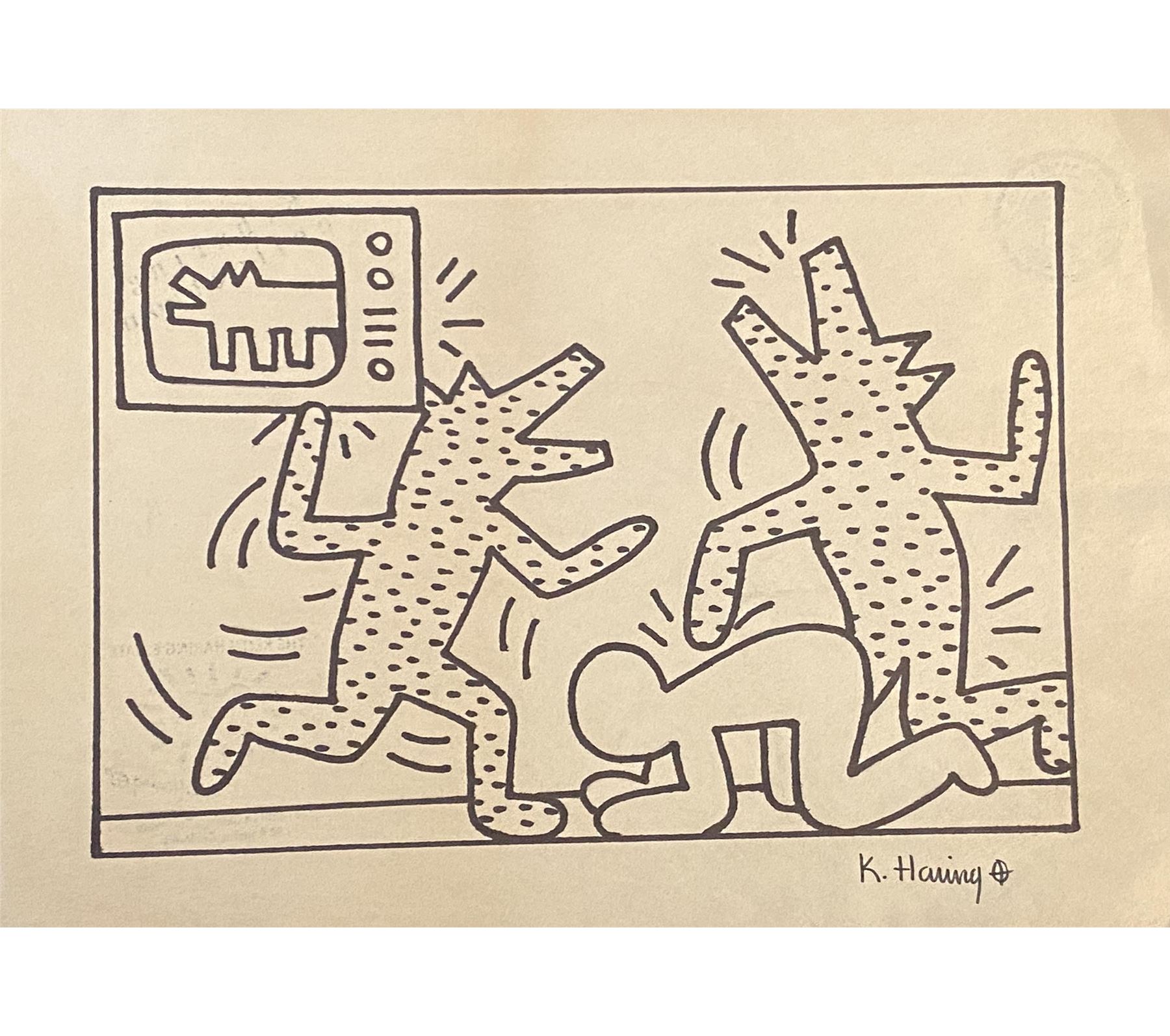 Keith Haring hand drawn and signed sketch. 12x8 inches