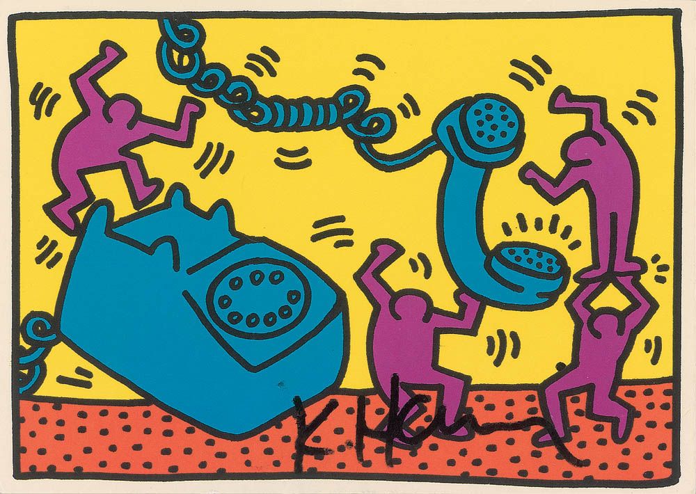 Color 6 x 4.25 postcard photo, signed in-person in black ink, “K. Haring.” In fine condition. Originally obtained by in-person specialist Mike Wehrmann.
