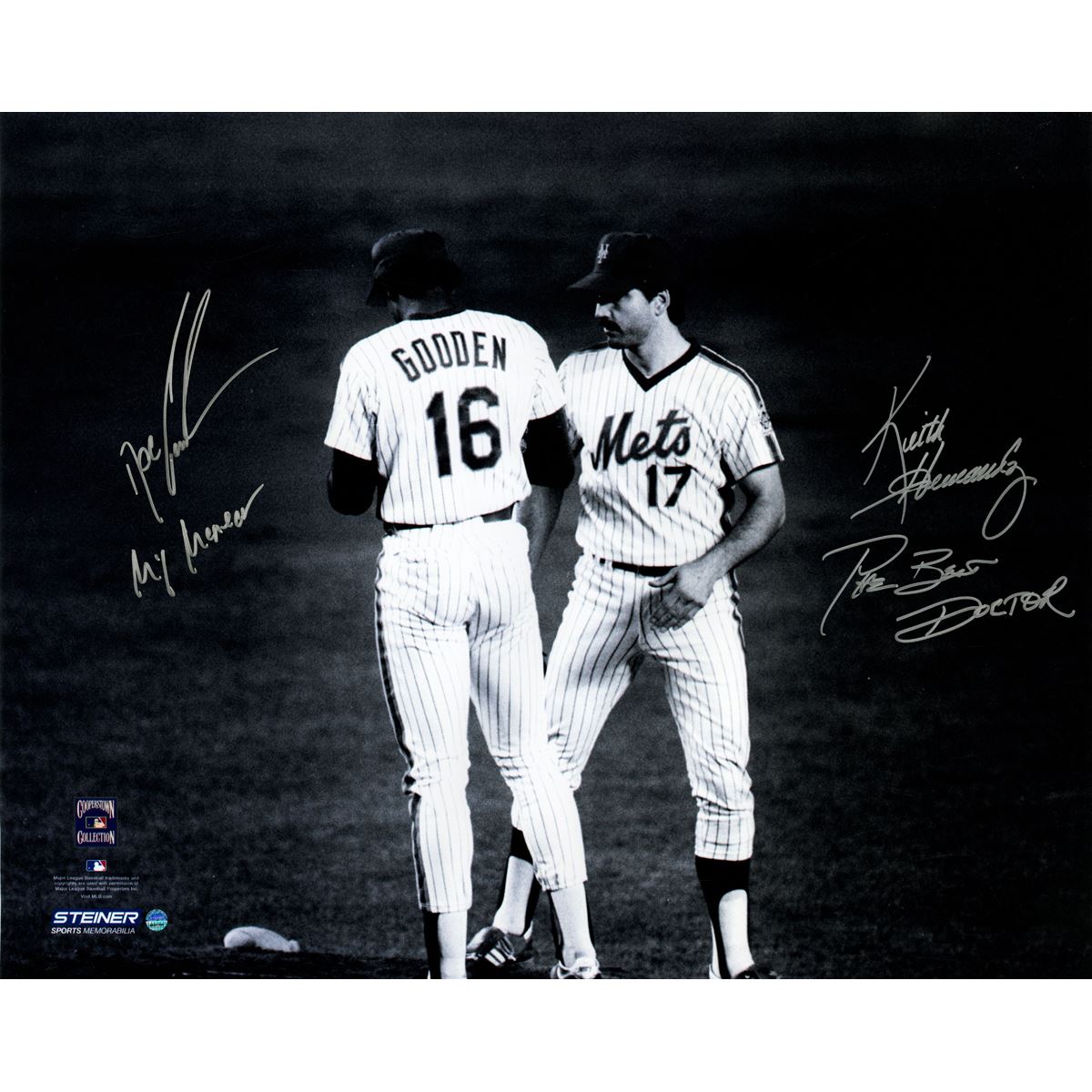 Keith Hernandez & Dwight 'Doc' Gooden Dual Signed Meet At The Mound B&W 16x20 Photo w/ "The Best Doctor" Insc. by Hernandez & "My Mentor" Insc. by Gooden