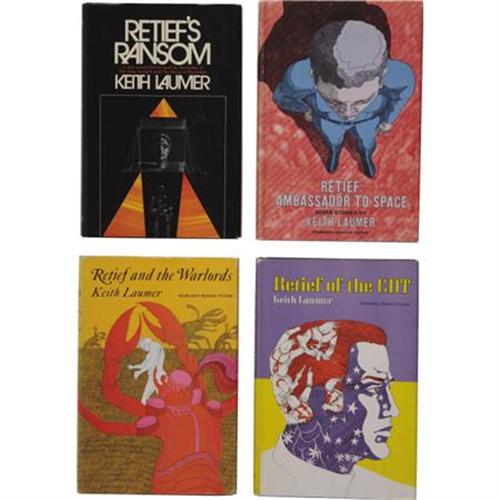 <B>Keith Laumer. Four "Retief" Series First Editions</B></I>, including: <B><I>Retief and the Warlords</B></I></B></I>. Garden City, NY: Doubleday and Company, Inc., 1968. Octavo. 188 pages. Black cloth with gilt spine titles. [and:] <B><I>Retief: Ambassador to Space</B></I></B></I>. Garden City, NY: Doubleday and Company, Inc., 1969. Octavo. 216 pages. Blue cloth with red spine titles. [and:] <B><I>Retief of the CDT</B></I></B></I>. Garden City, NY: Doubleday and Company, Inc., 1971. Octavo. 172 pages. Black cloth with gilt spine titles. [and:] <B><I>Retief's Ransom</B></I></B></I>. New York: G. P. Putnam's Sons, 1971. Octavo. 189 pages. Black cloth with red spine titles. Overall, books and dust jackets are fine. <I>From the Robert and Diane Yaspan Collection.</B></I><BR><BR><b>Shipping:</b> Books & Catalogs (<a target="_blank" href="http://www.heritageauctions.com/common/shipping.php">view shipping information</a>)