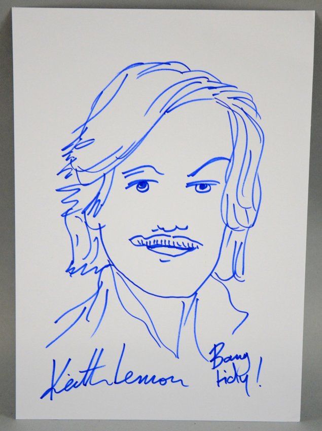 Keith Lemon, a self portrait sketch of the TV star in blue felt tip signed 'Keith Lemon Bang Tidy!' 11? x 8?in. (28 x 20cm)