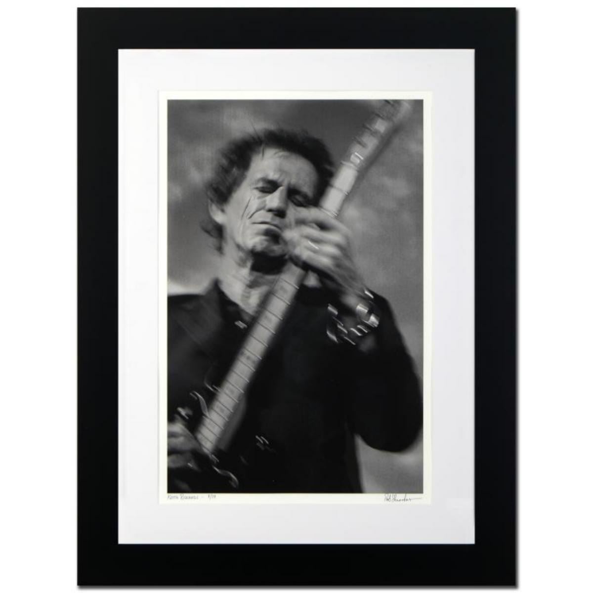 "Keith Richards" is a limited edition giclee on paper, numbered and hand signed by acclaimed music industry photographer Rob Shanahan. This piece comes custom framed. Includes Certificate of Authenticity. Measures approx. 25" x 32" (with frame), 14" x 22" (image). Reference #: 237500.