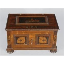 Dunántúl, 1716, tömör diófa, festett jávorfa berakással, aranyozott kovácsoltvas fogantyúkkal, eredeti pántokkal és zárszerkezettel, 19. sz.-i átalakítással, 38*63*40 cm