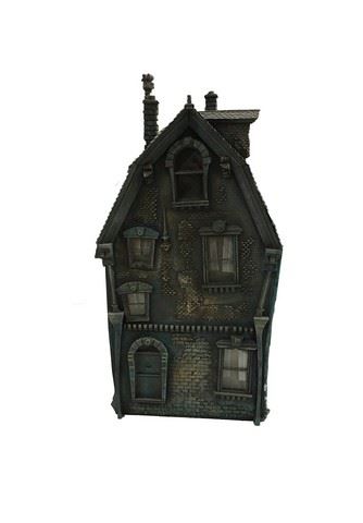 Hand crafted whimsical building that made up an entire town. The model town created all of the backgrounds for the entire music video with the artist Kelis shot separately and composited into the scenes. Designed by New Deal Studios co-founder Ian Hunter with the mandate that the buildings feel like they would exist in a "Tim Burton" world. Fabricated from wood, styrene, stucco and resin castings. 15" long x 27" tall. Ratio 1:24.
