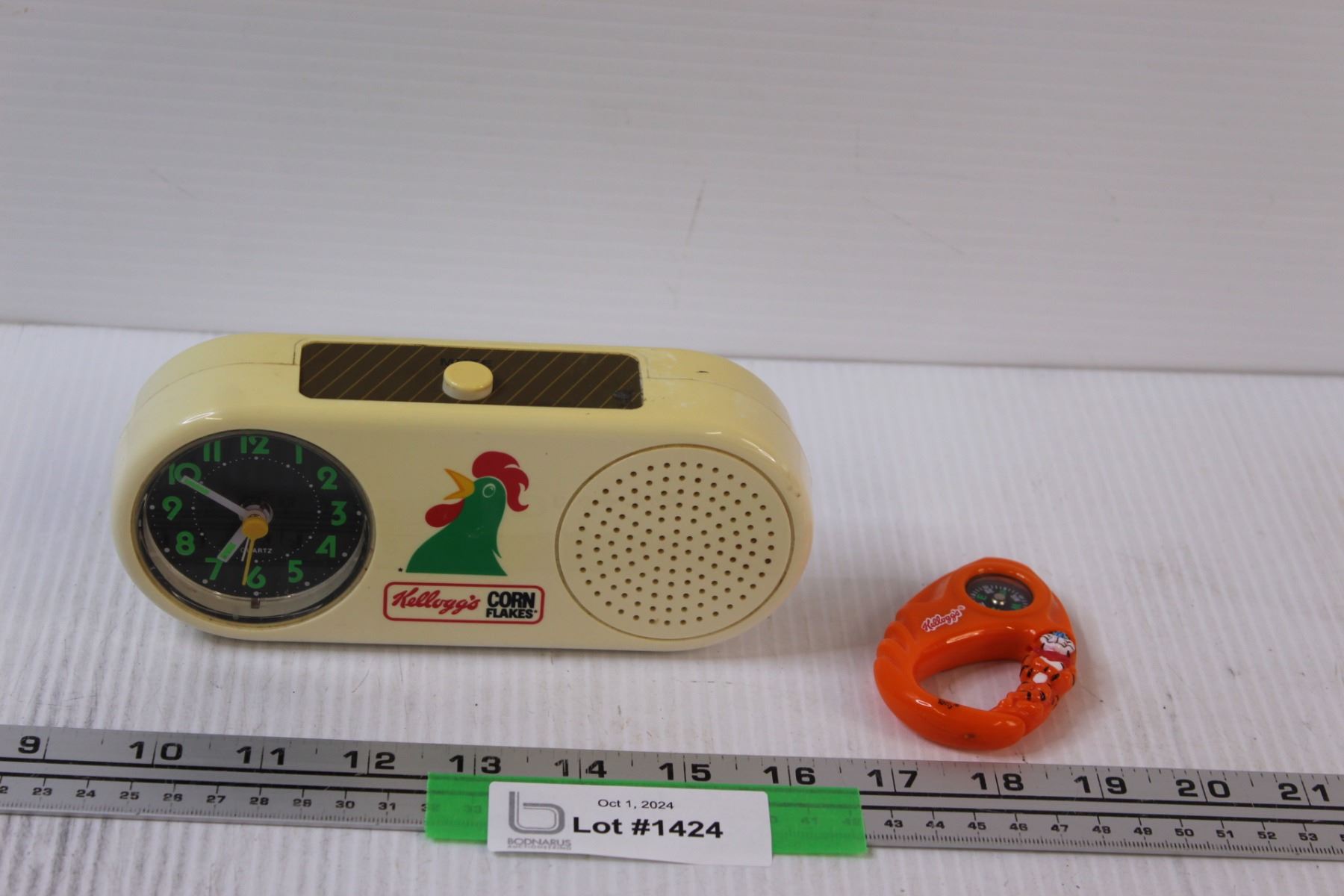 Kellogg's Alarm Clock (Works, Batteries Not Included), & Clip Compass