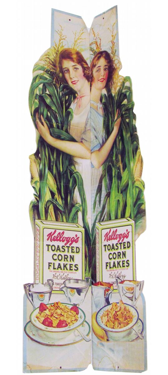 Kellogg's "Bookend" Die Cut Cardboard Signs. Toasted Corn Flakes. Folds and some staining otherwise good condition. Each measures 14 /4 X 63 inches.
