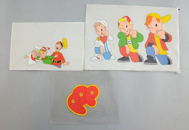 Kellogg's Snap, Crackle and Pop, three original hand painted cels of the cartoon mascots & logo, all painted on acetate