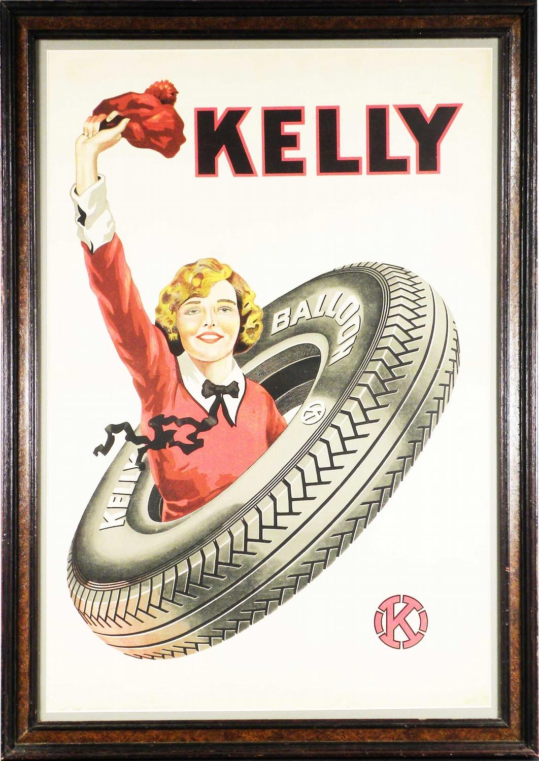 Kelly Balloon Tire Paper Sign, German. Some wrinkles and crease around the edges and three horizontal folds otherwise good condition. 16 X 23 inches image only.