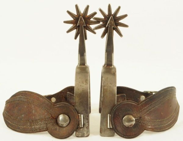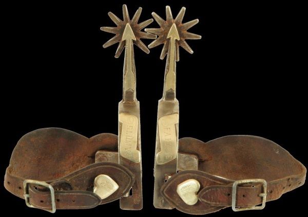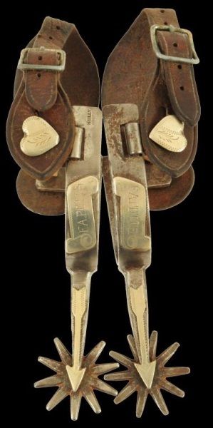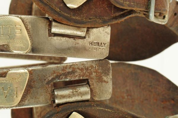 Overlay on heel strap marked "F.A. Potts", heart buttons, arrow on shanks, with leathers.