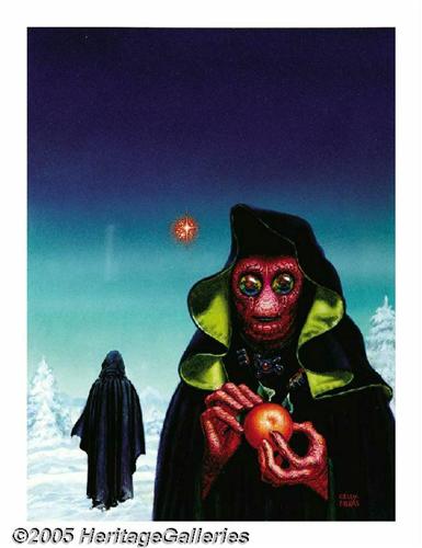 <B>Kelly Freas - Analog Cover Original Art (1989).</B></I> Kelly Freas' long association with John W. Campbell and <B>Astounding/Analog</B></I> began in 1953, and continued as recently as June, 2001. Forty-eight years in illustration, let alone with one client, is an amazing tenure. He even won the prestigious Reader's Poll Award from <B>Analog</B></I> for the best cover of the year, in 1991. The work was painted in acrylic on board, with a 12" x 16" image area, and is in Excellent condition. Kelly Freas signed the painting at the lower right.