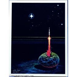<B>Kelly Freas - Space Program Signed Prints, Group of 6 (1971).</B></I> A striking group of signed prints relating to the Apollo space program. The prints measure 17" x 22" with an image area of 15" x 19.5", and all are in VF to NM condition. <BR><BR><B>Important notice:</B> Heritage usually auctions material at the rate of 200-250 lots per hour. On some occasions eBay Live bid software or the Internet may not be able to keep up with the pace of the auction. We recommend placing a realistic absentee bid now as insurance to avoid disappointment. Occasionally the auctioneer may eliminate or reject an eBay Live bid, and the auctioneer may also reopen a lot after the close of the eBay live bidding (usually because we missed an audience bid), and may reject your bid even if it shows you as the winning bidder. By bidding via eBay Live, you agree that Heritage may award the lot to another bidder at its sole discretion under the circumstances described above or any other reasonable circumstances. Since eBay bids are not shown to us until we open the lot on the floor, we treat those bids just like floor bids. In most cases the floor responds before the eBay bid is presented to us, due to Internet lag time, so for consistency we have made it a policy that floor bids are always considered first over tie eBay live bids. Also please note that all Heritage lots purchased through eBay Live carry a 20% Buyer's Premium. Please make sure you read the Terms and Conditions before you bid.