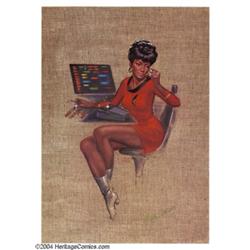 <B>Kelly Freas - Star Trek Signed Prints, Group of 7 (1976).</B></I> The stalwart crew of the starship <I>Enterprise</B></I> are depicted in individual portraits in this nice set of signed prints by Kelly Freas. These works were created for a special convention book at the New York Star Trek Convention and the group is titled "Officers of the Bridge." Includes Kirk, Spock, McCoy, Uhura, Scotty, Checkov, and Sulu. The prints measure 12.5" x 19" with an image area of 11" x 15.5", and all are in VF to NM condition. <BR><BR><B>Important notice:</B> Heritage usually auctions material at the rate of 200-250 lots per hour. On some occasions eBay Live bid software or the Internet may not be able to keep up with the pace of the auction. We recommend placing a realistic absentee bid now as insurance to avoid disappointment. Occasionally the auctioneer may eliminate or reject an eBay Live bid, and the auctioneer may also reopen a lot after the close of the eBay live bidding (usually because we missed an audience bid), and may reject your bid even if it shows you as the winning bidder. By bidding via eBay Live, you agree that Heritage may award the lot to another bidder at its sole discretion under the circumstances described above or any other reasonable circumstances. Since eBay bids are not shown to us until we open the lot on the floor, we treat those bids just like floor bids. In most cases the floor responds before the eBay bid is presented to us, due to Internet lag time, so for consistency we have made it a policy that floor bids are always considered first over tie eBay live bids. Also please note that all Heritage lots purchased through eBay Live carry a 20% Buyer's Premium. Please make sure you read the Terms and Conditions before you bid.