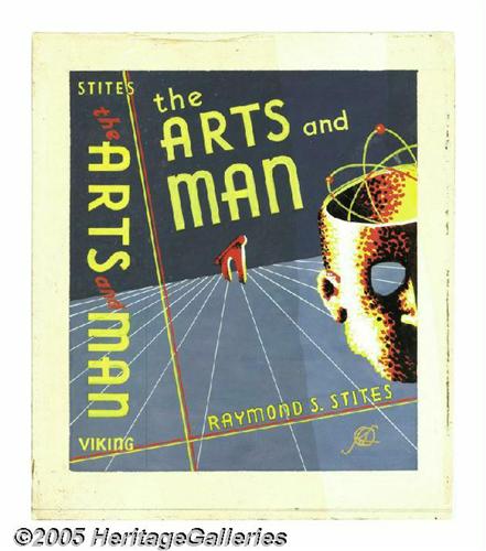 <B>Kelly Freas - "The Arts And Man" Book Cover Original Art (Viking, undated).</B></I> Kelly Freas painted this cover for "The Arts and Man" by Raymond S. Stites in acrylic on board. His surreal montage symbolized the realms of ideas and culture. The cover has an 8" x 7" image area, and is in Excellent condition. Kelly Freas signed the art at the lower right with his initialed monograph.