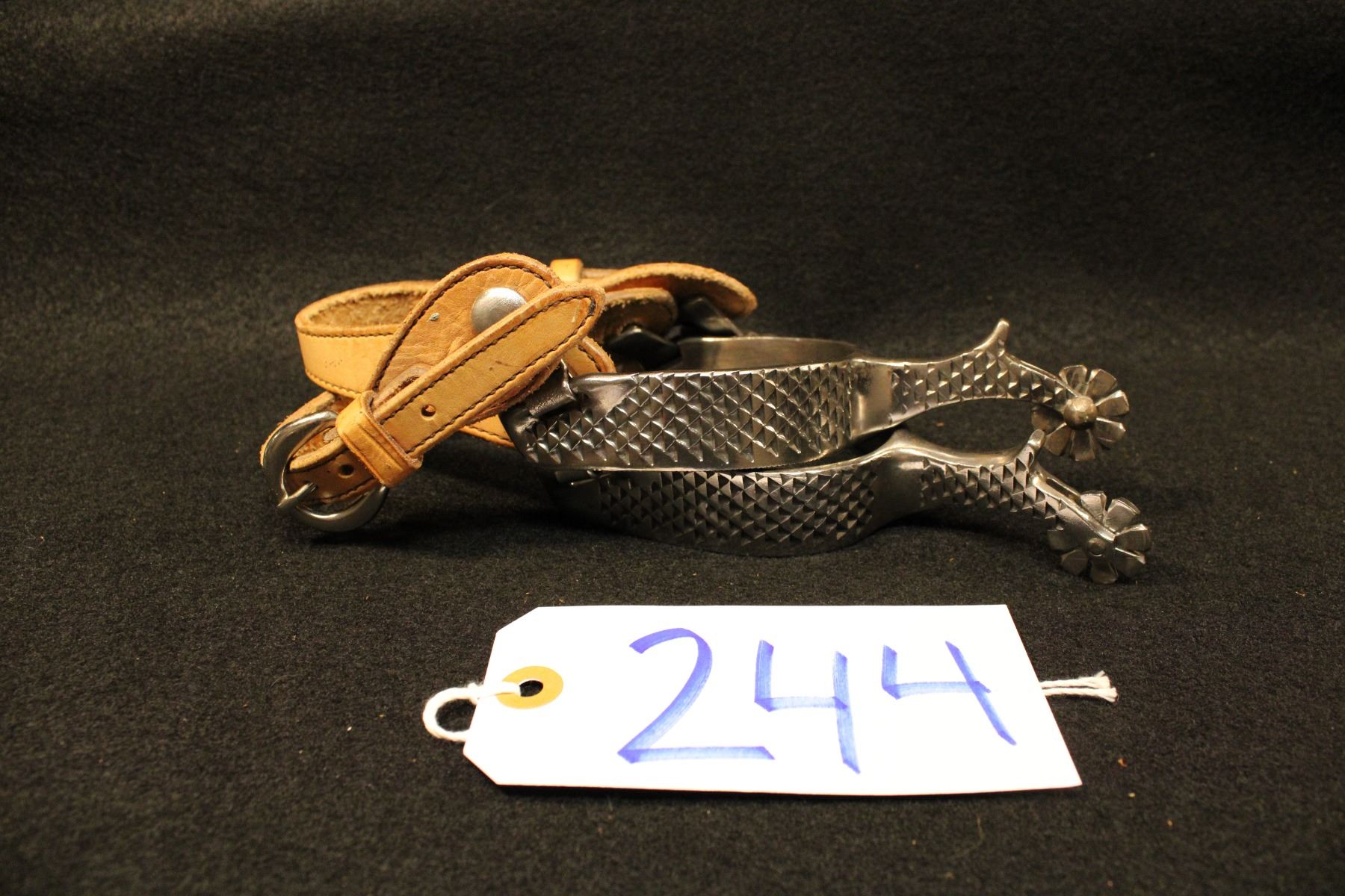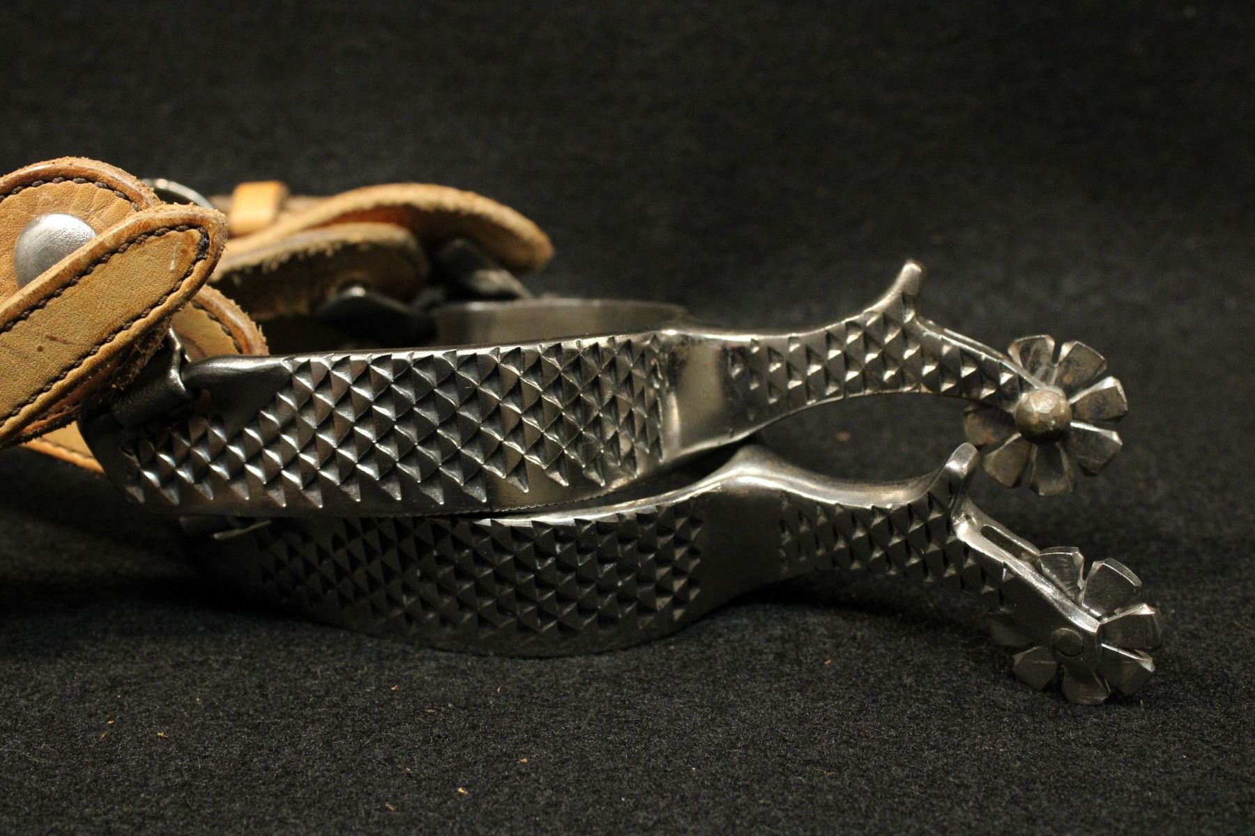 Pair of NFR cowboy Kelly Wardell horseshoe rasp spurs