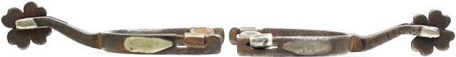 with 1/2" heel bands, 2 1/8" shanks, 1 1/4" cloverleaf rowels.