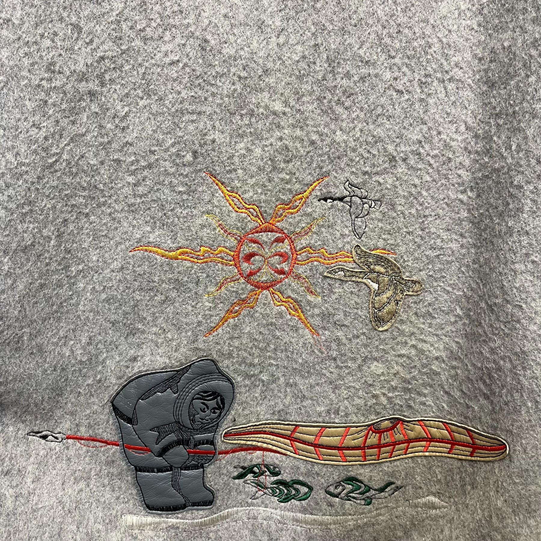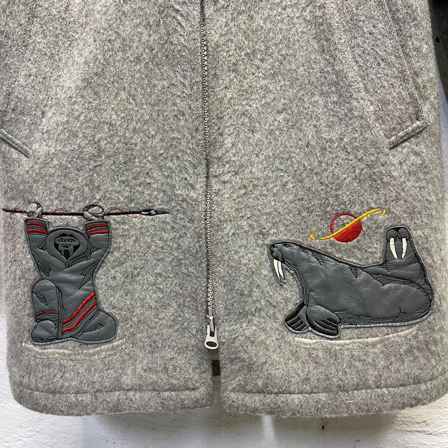 Kelsey Trail Wool Parka with Leather Inuit Themed Applique Size 14