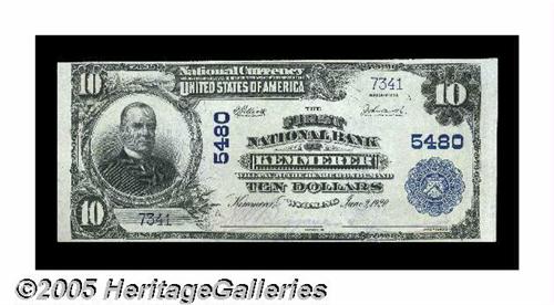 <B>Kemmerer, WY</B></I> - $10 1902 Plain Back Fr. 633 <B>The First NB</B></I> Ch. # 5480<BR>One of only a tiny number of large size Wyoming notes in this state of preservation, most all of which have long since disappeared into long-term holdings. Vividly colored and with bright white paper, this example is as nice as any we've seen from this state in the past several years. <B>Gem Crisp Uncirculated,</B></I> a perfect note for the collector building the ultimate state or type set.