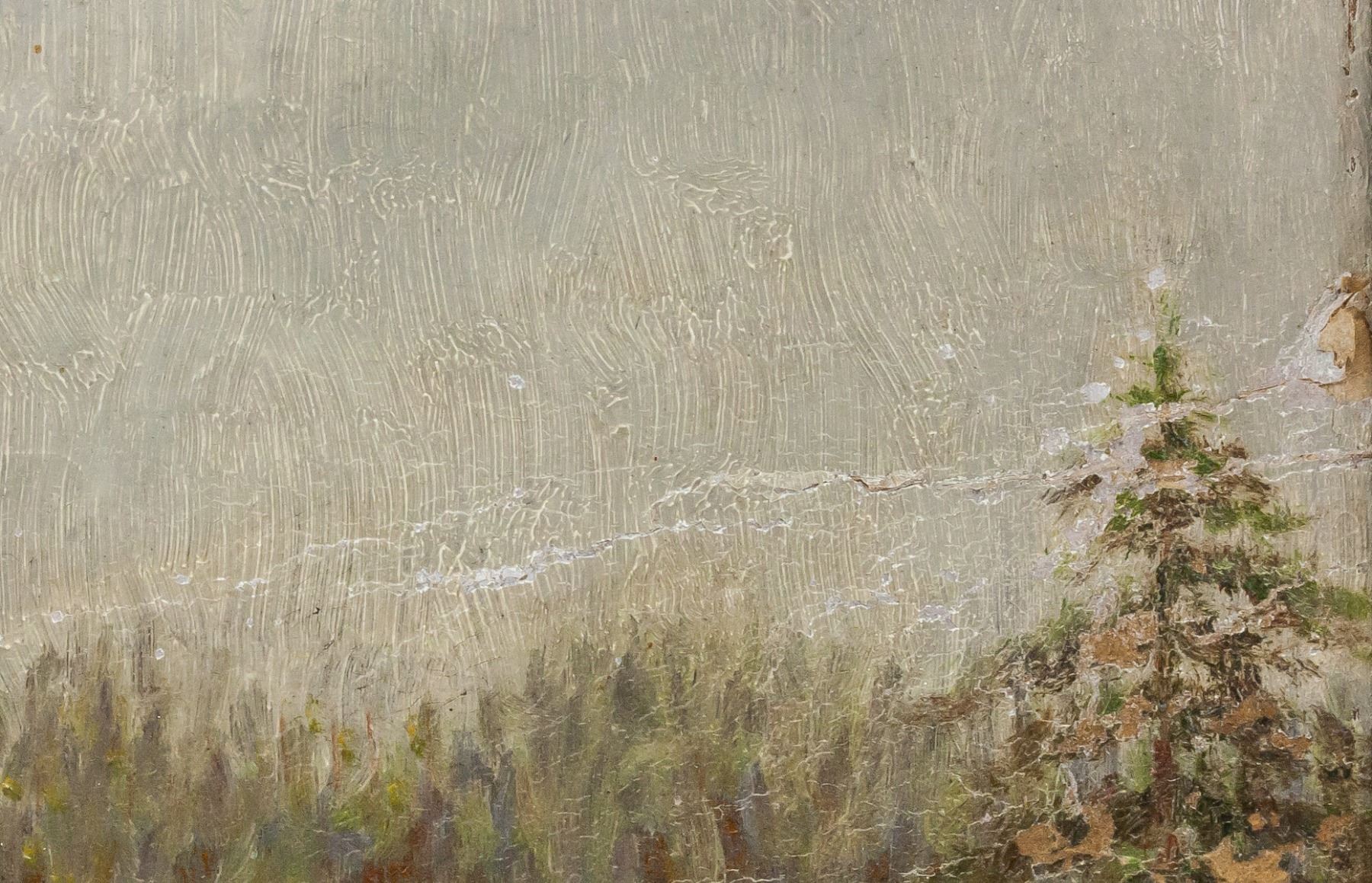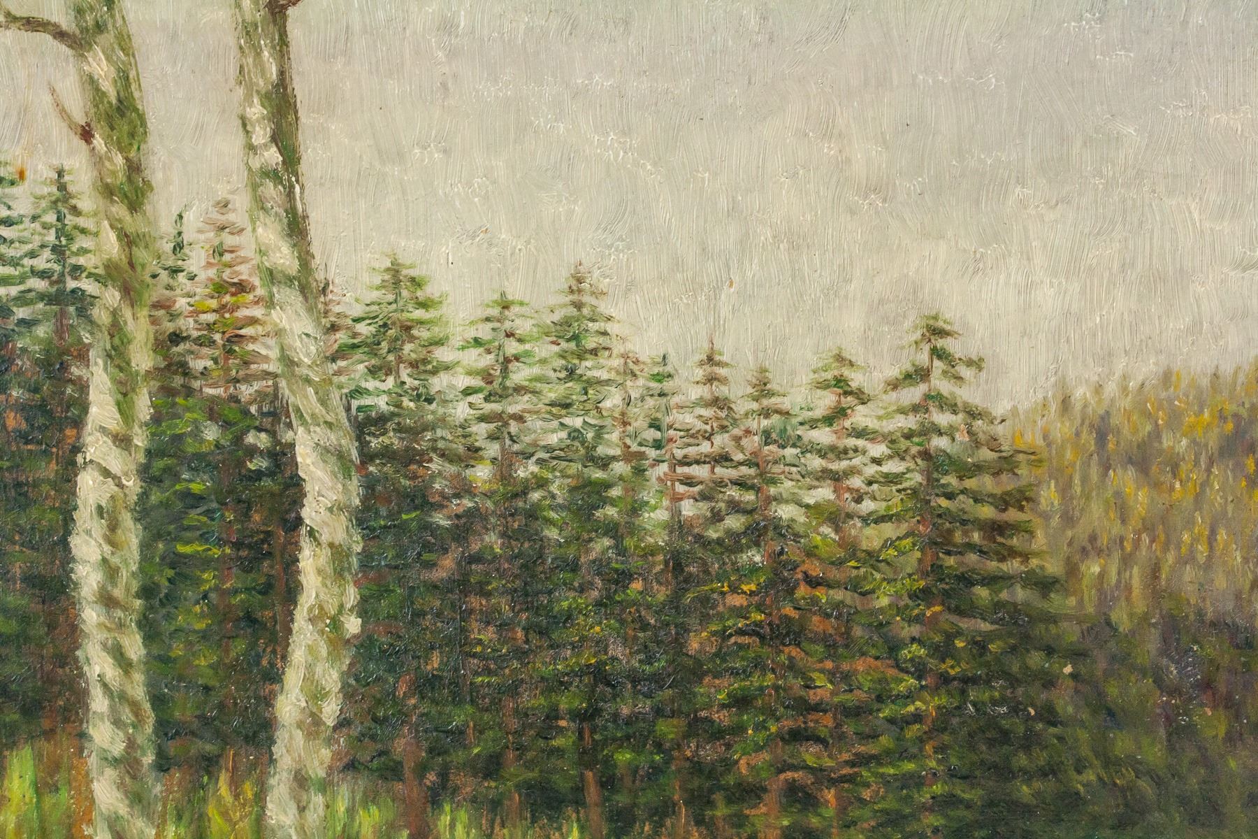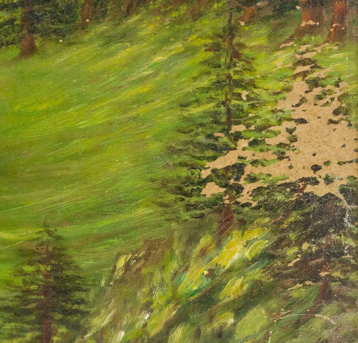 Oil on board, framed. Featuring landscape scene of a wide trail through the woods. Signed "Kemnitz" on the bottom right corner with "14.IV.1982" inscribed beneath. 36.5 x 53.5 cm (14.25 x 20.75 in), Frame: 51 x 68 cm (20 x 26.75 in). PROVENANCE: This lot carries limited provenance from a Private German collection