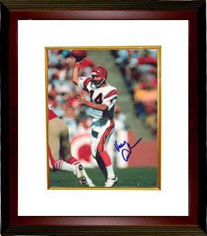 Ken Anderson was drafted 67th overall in the 1971 NFL Draft by the Bengals. He would become one of the most accurate short-range passers in the league, and was extremely effective at rushing the ball for a quarterback. Ken is considered to be one of the first quarterbacks to run what would become known as the "West Coast Offense." Ken Anderson has hand signed this Cincinnati Bengals 8x10 Photo. NSD Hologram and Certificate of Authenticity from Athlon Sports. Custom White Mat and Premium Mahogany Color Frame.