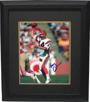 Ken Anderson was drafted 67th overall in the 1971 NFL Draft by the Bengals. He would become one of the most accurate short-range passers in the league, and was extremely effective at rushing the ball for a quarterback. Ken is considered to be one of the first quarterbacks to run what would become known as the "West Coast Offense." Ken Anderson has hand signed this Cincinnati Bengals 8x10 Photo. NSD Hologram and Certificate of Authenticity from Athlon Sports. Custom Black Mat and Premium Black Color Frame.