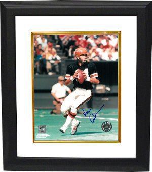 Ken Anderson was drafted 67th overall in the 1971 NFL Draft by the Bengals. He would become one of the most accurate short-range passers in the league, and was extremely effective at rushing the ball for a quarterback. Ken is considered to be one of the first quarterbacks to run what would become known as the "West Coast Offense." Ken Anderson has hand signed this Cincinnati Bengals 8x10 Photo. Custom White Mat and Premium Black Color Frame as shown. NSD Hologram and Certificate of Authenticity from Athlon Sports.