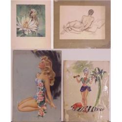 FIGURAL THEMES, three watercolors and one pastel on paper and board, sizes 13 x 12" to 27 x 18", all signed, with old tape, glue, and registration marks associated production & publication otherwise in fairly good condition, in condition as received by artist's estate. (4) STARTING BID $20. ESTIMATE $20 TO $1000