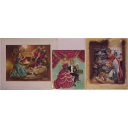 SCENES OF MARRIED LIFE, 1930's to 1940's, three watercolors on board, one with collage, sizes 22 1/2 x 18" to 21 x 26", two signed, with old tape, glue, and registration marks associated production & publication otherwise in fairly good condition, in condition as received by artist's estate. (3) STARTING BID $20. ESTIMATE $20 TO $1000