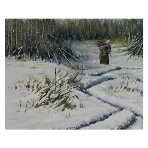 Canadian [b. 1960] GOOD PLACE FOR FIREWOOD; 1996 acrylic on canvas 16 x 20 in. (40.6 x 50.8 cm) signed, titled & dated