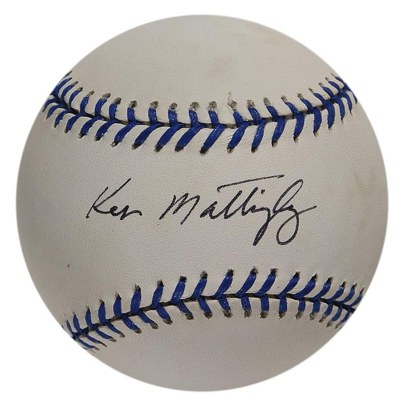 Official Rawlings American League Joe DiMaggio commemorative baseball signed in black ink on the sweet spot. In fine condition, with some scattered light soiling. Pre-certified Scott Cornish and RRAuction COA.