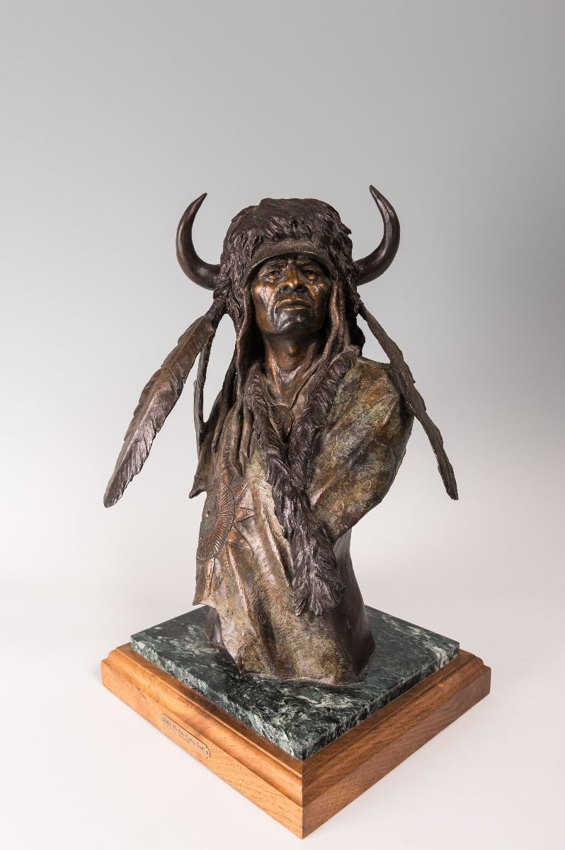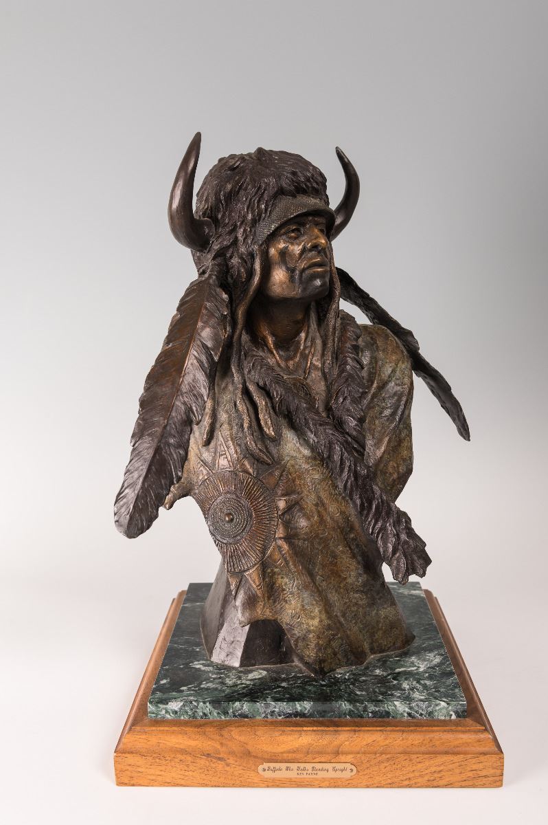 Ken Payne (1938-2012). Buffalo Who Walks Standing Upright. 18" x 12" x 11" bronze on swivel base. Inscribed: © '93, Ken Payne, 4/30.