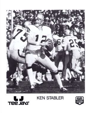 Classic Unautographed photo of Oakland Raider Great Ken Stabler. B&W QB Legends Promo