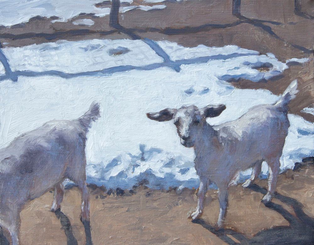 Artist: Loren Arsen. Title: Ken's Neighbor's Goats. Size: 8" x 10". Medium: Oil on Canvas. Description: Oil painting by Loren Arsen