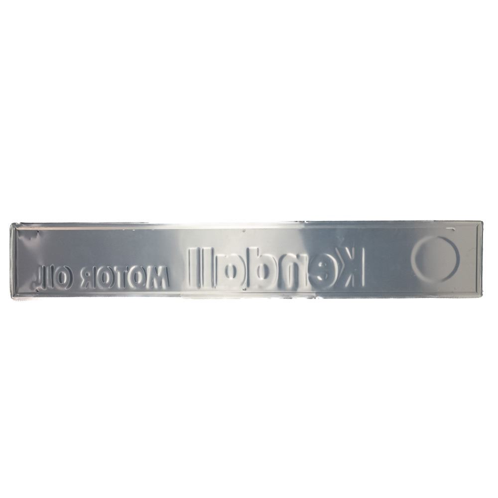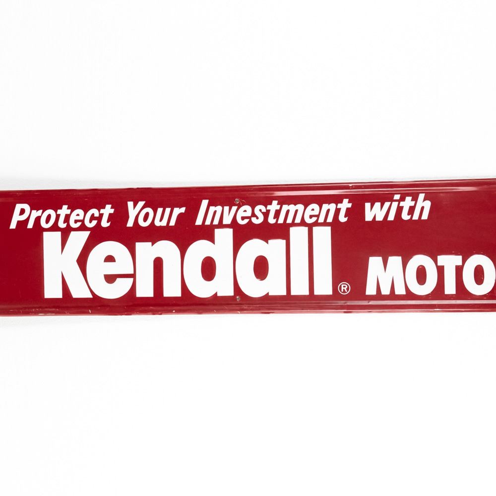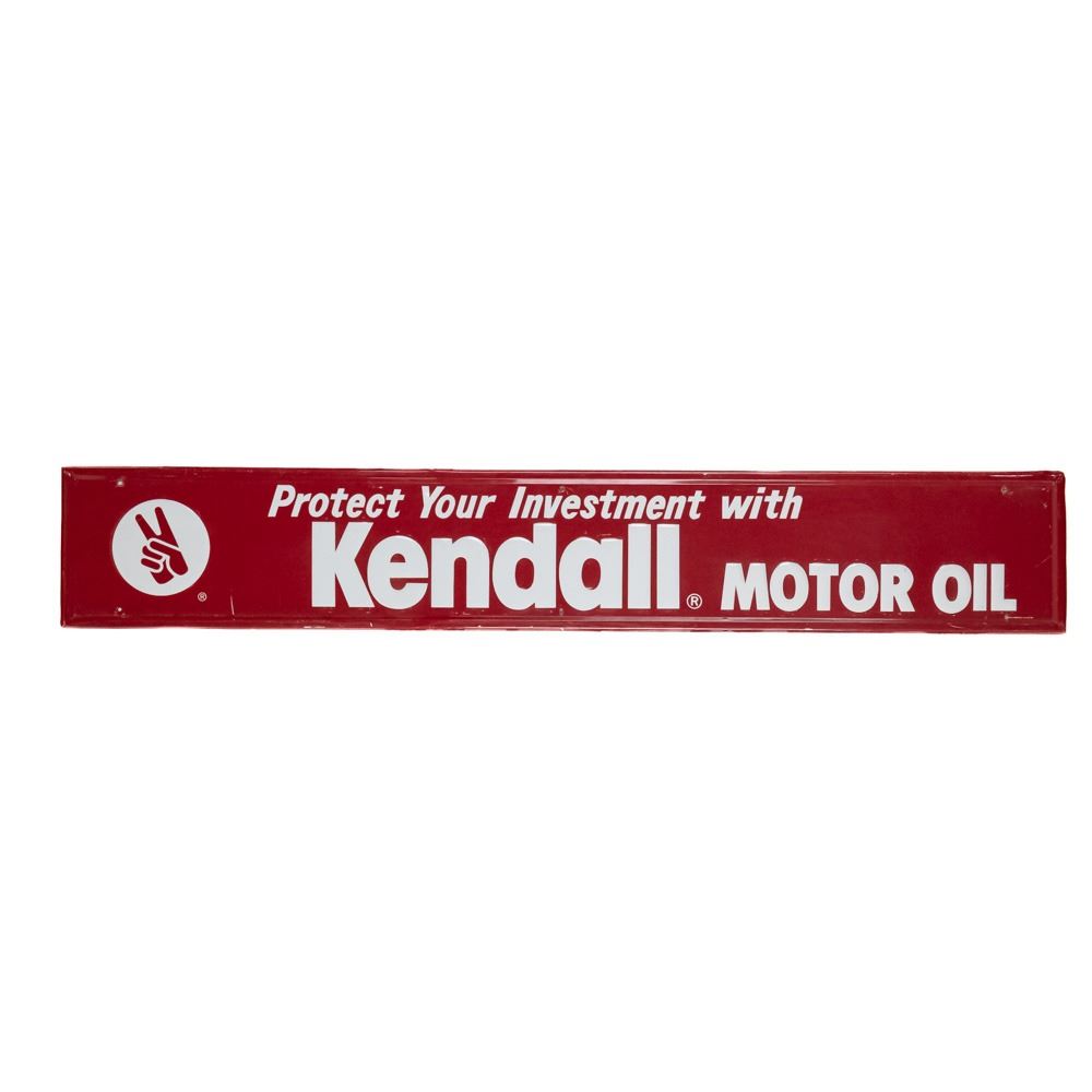 Vintage Kendall Motor Oil embossed single sided metal advertising sign. Grace Comm. Inc St Louis Mo near bottom edge, very good to good overall condition with moderate scratches, stray mark, dings (unevenness) extra holes and oxidation. Approximately 12"t x 72"l. Please use photos to judge condition and bid accordingly.