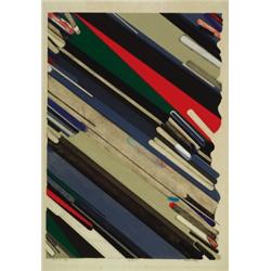 DIAGONAL STRIPES, Colour woodcut; signed, inscribed with Japanese characters, dated 1965-4 and numbered 1/20 in pencil to margin. Unframed.