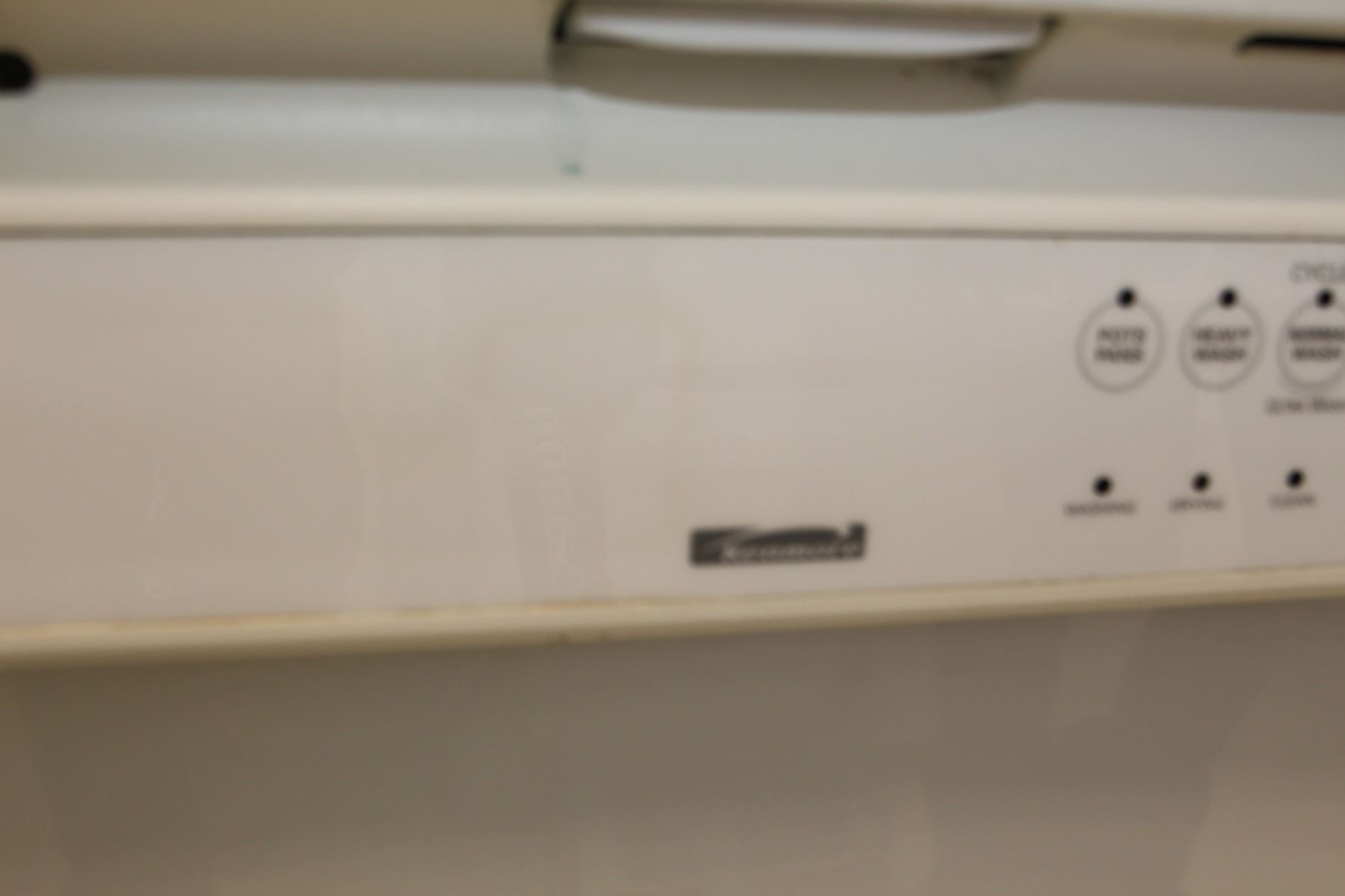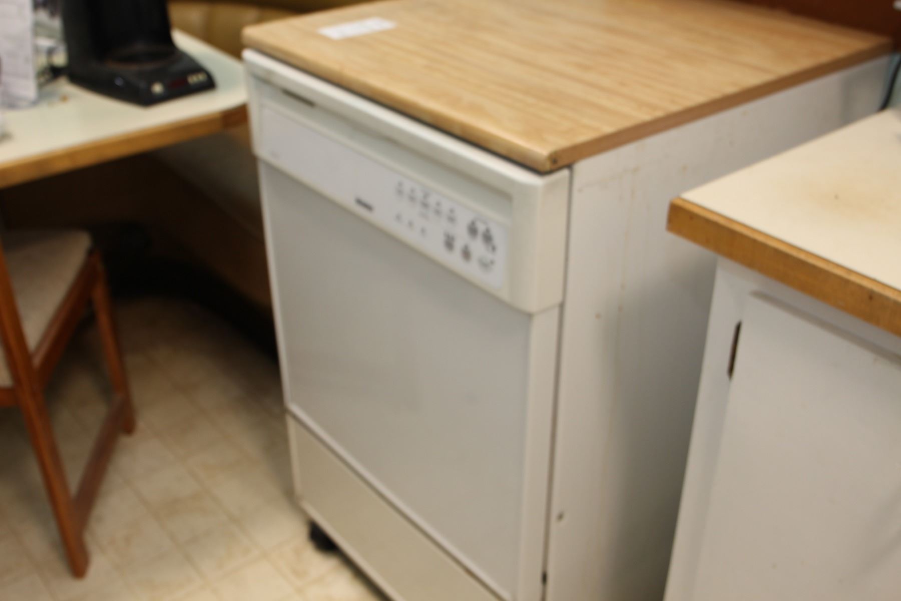 Kenmore portable dishwasher on castors with wood counter top 24X27X37. Owner said it works, bring help to remove from home. Pick up at 11:00 am - 12:00 pm