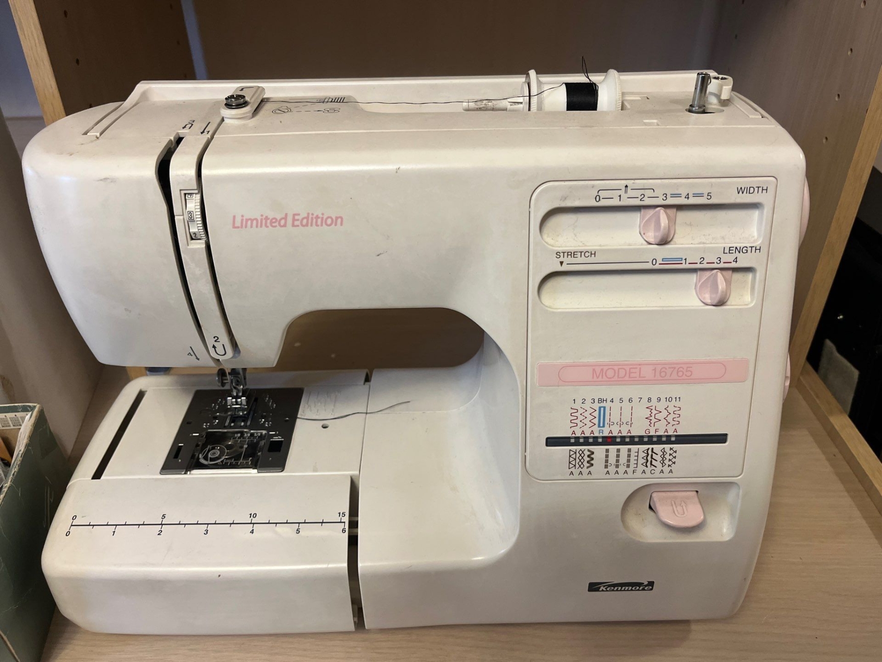 Kenmore, limited edition, sewing machine with pedal and a number of bobs of threadK
