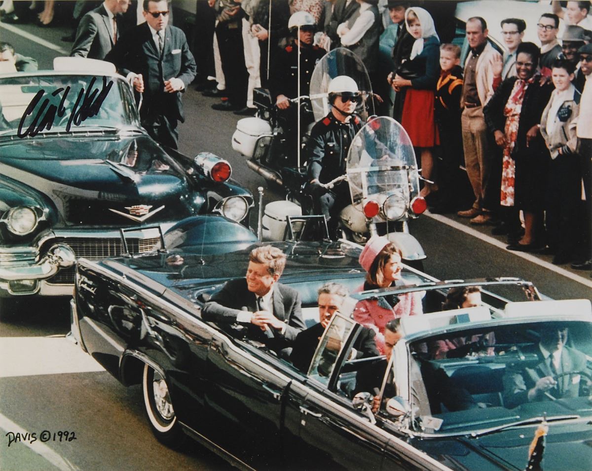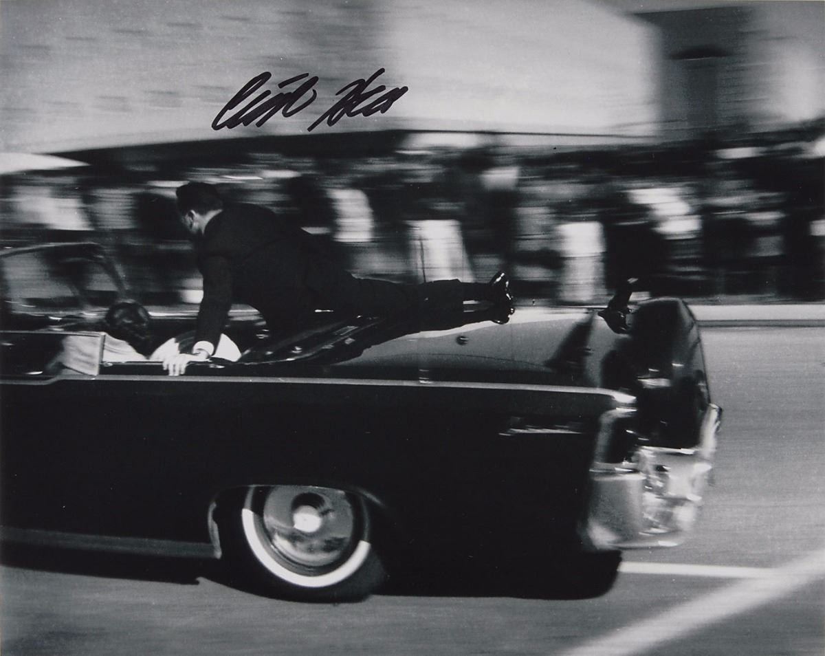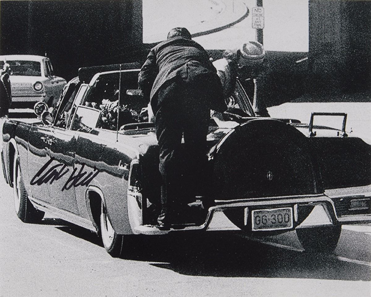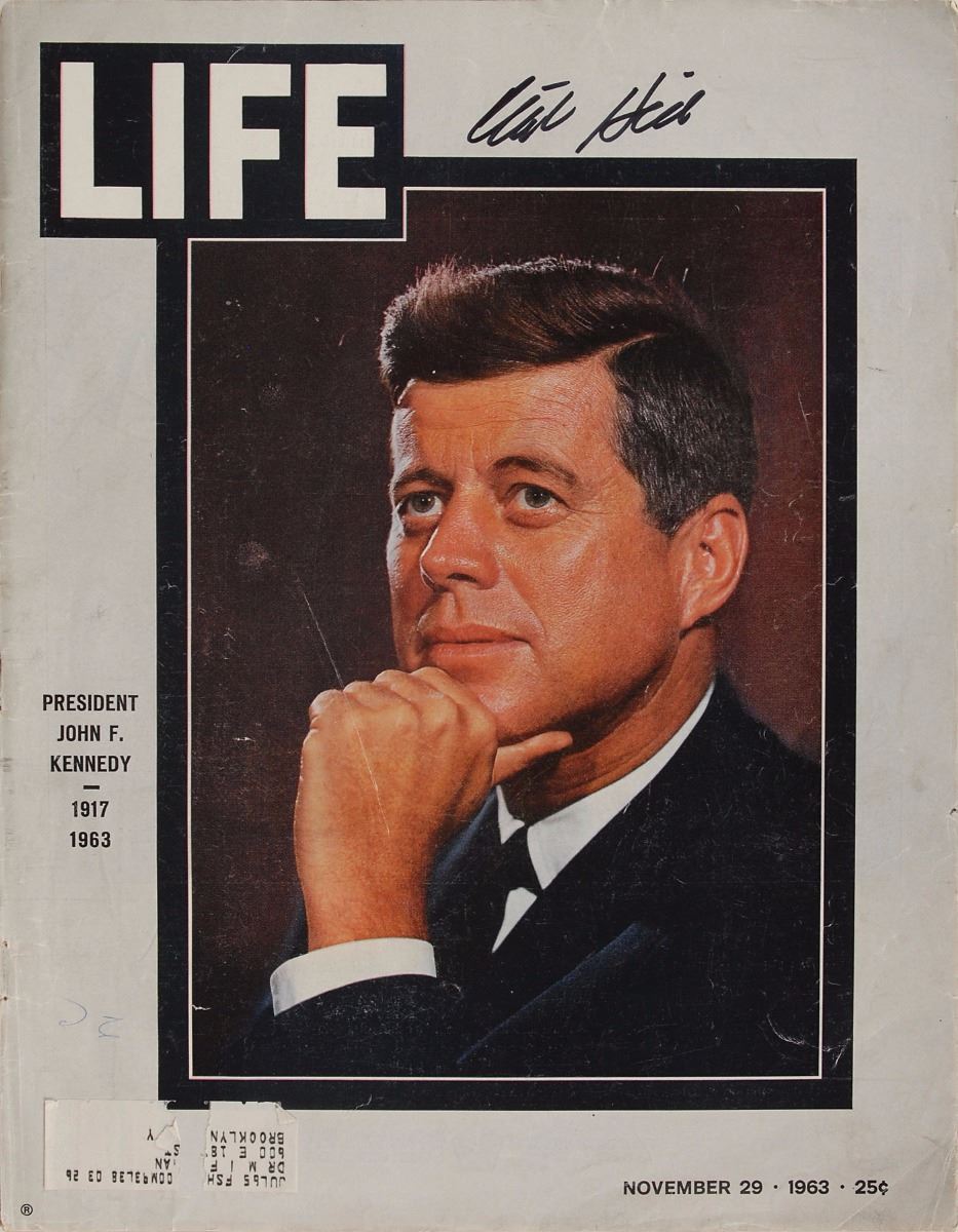 Four items signed in black felt tip by Hill, including: three satin-finish 10 x 8 photos from the JFK motorcade in downtown Dallas on November 22, 1963; and a copy of Life magazine, 10.5 x 13.5, 104 pages, dated November 29, 1963. In overall fine condition.