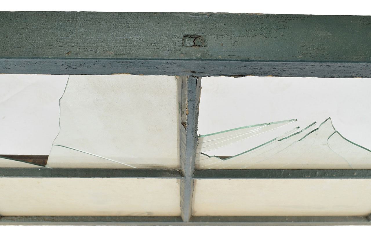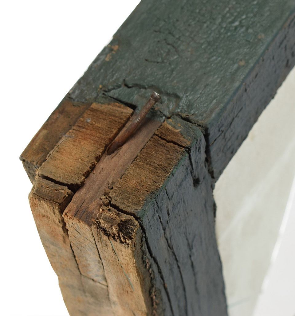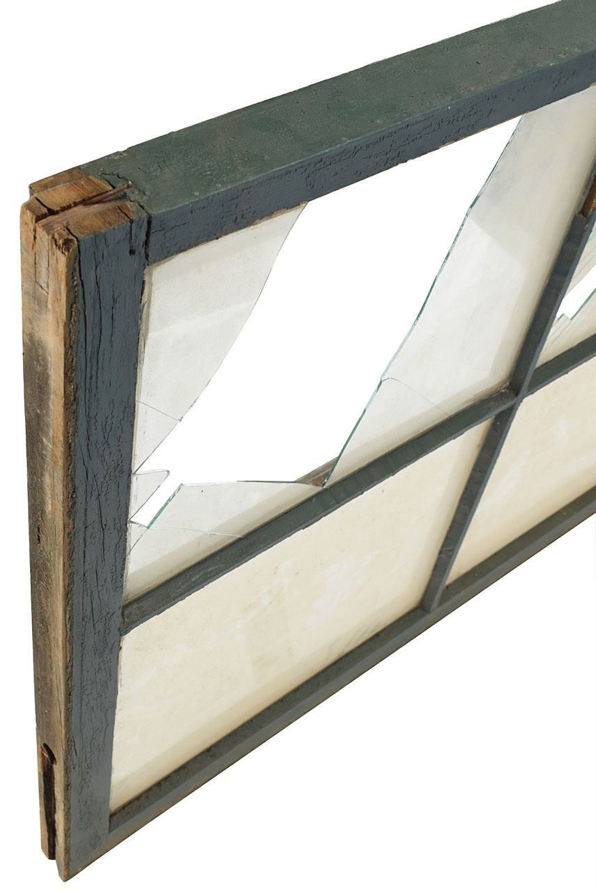 An original window sash from the Texas School Book Depository that was in the building when the shots were fired on November 22, 1963. The window measures 40.5 x 32.25 and retains its original dark green paint, as well as the lock hardware and rope cords on the sides; unfortunately, the original glass was shattered in transit. In good to very good condition, with soiling and wear, and glass broken as mentioned.