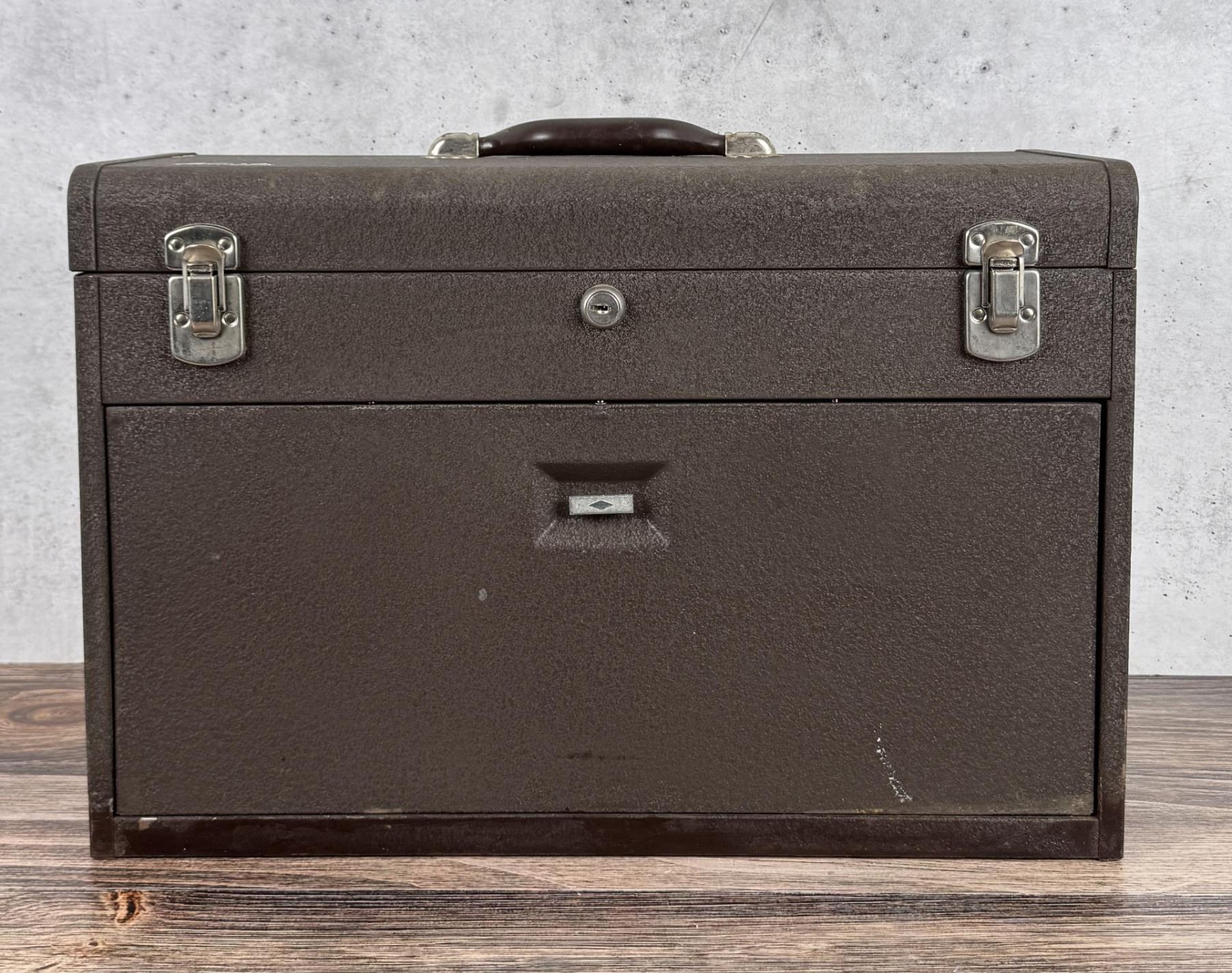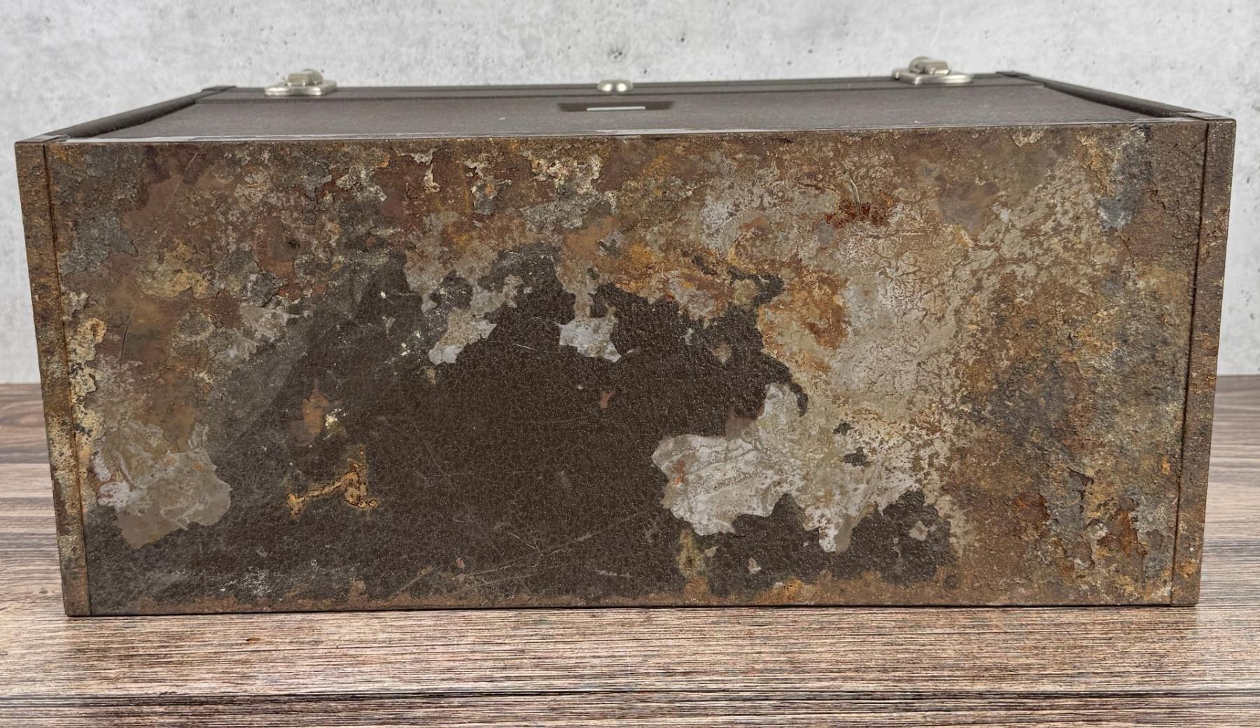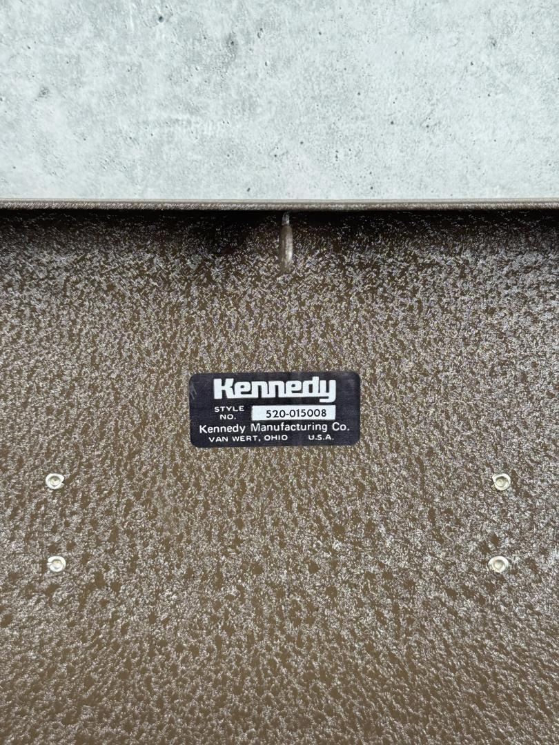 Includes key. 20 1/4" wide by 14 3/8" tall by 9 1/8" deep.
