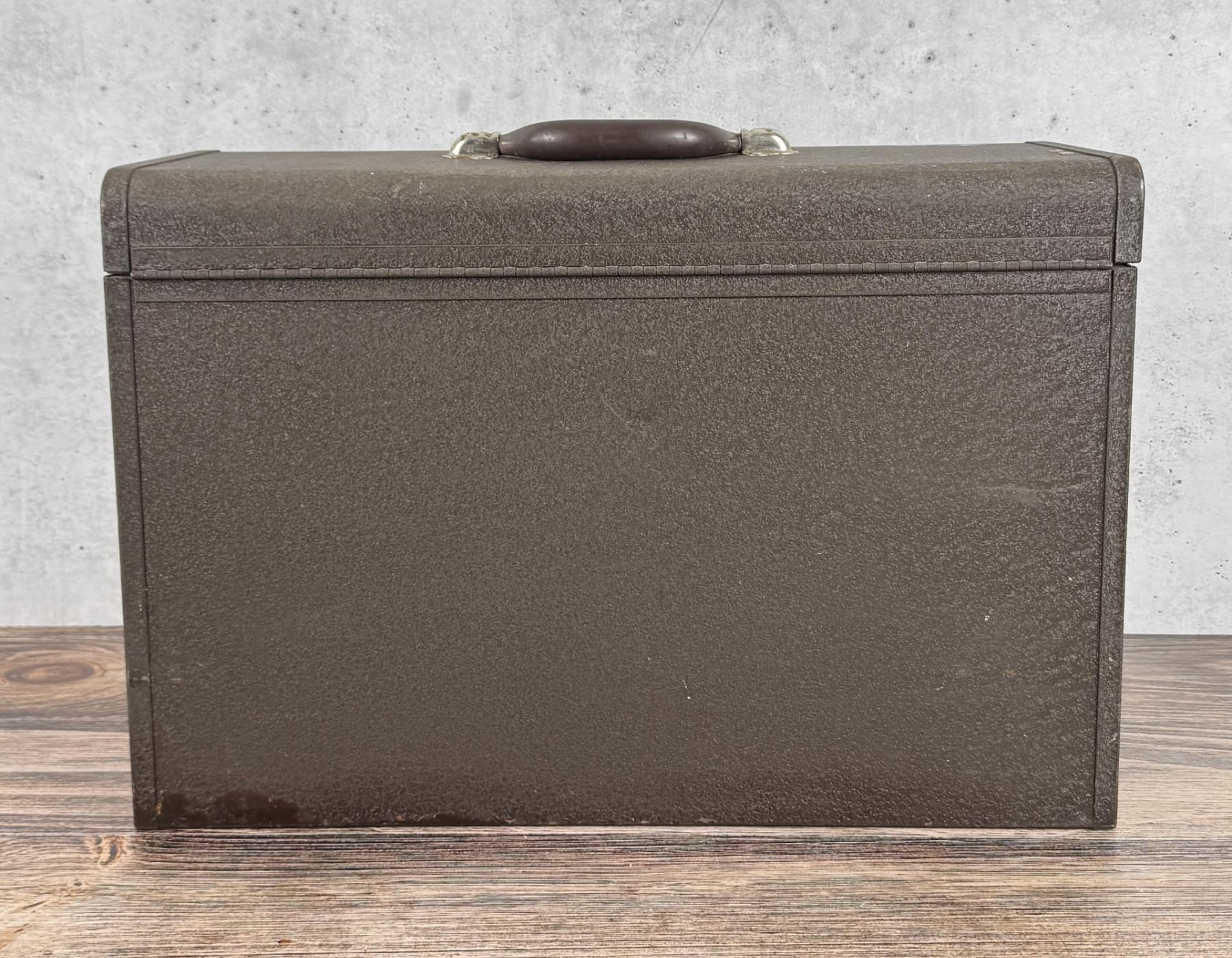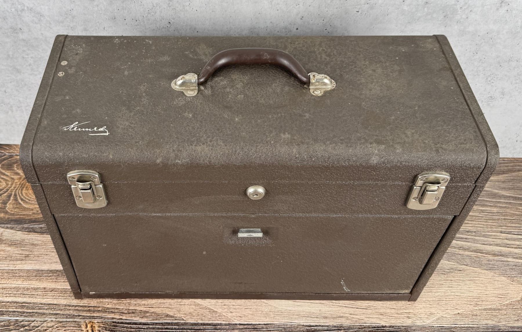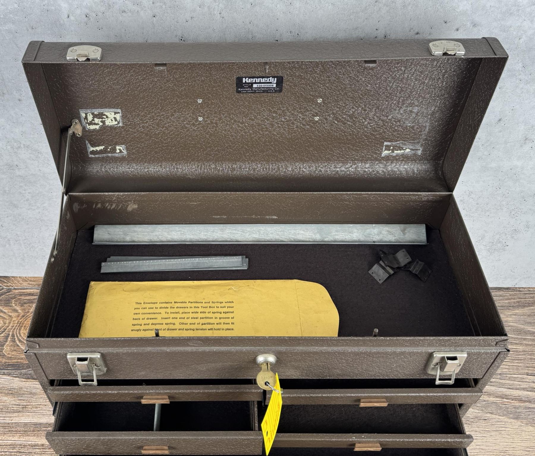 Includes key. 20 1/4" wide by 14 3/8" tall by 9 1/8" deep.