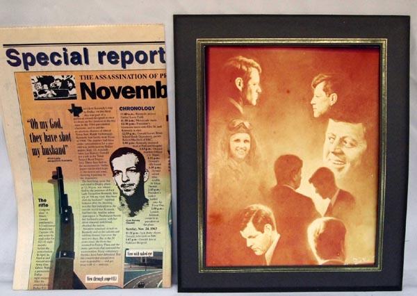 Kennedy Family Portrait Photograph and Newspaper Clipping from ''The Time Recorder, Monday, Nov. 22, 1993''. Picture measures approx. 9 1/2'' x 7 1/2''. SHI $20.