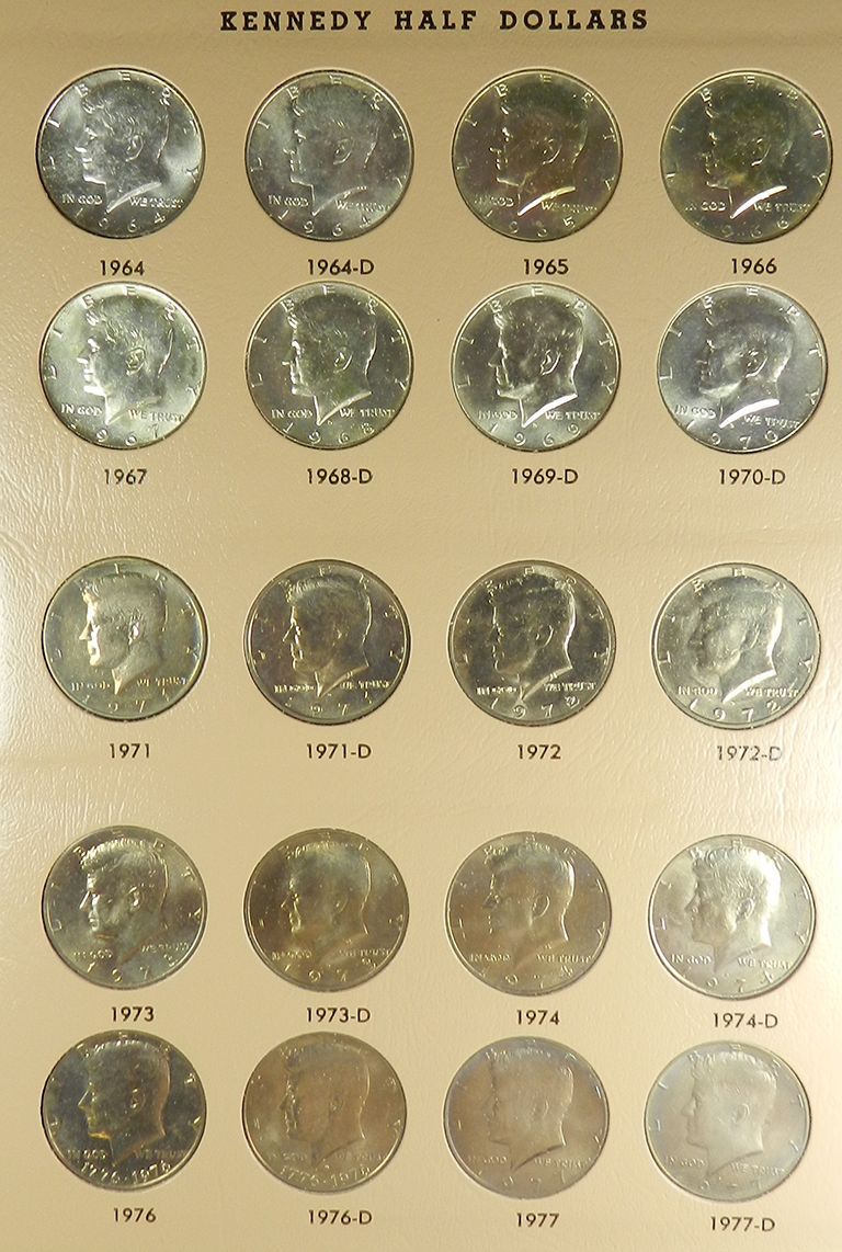 Kennedy Half Dollar Collection, 1964 to 2005. Features all P & D mint issues, no S Mint issues. Avg Unc. 76 coins.
