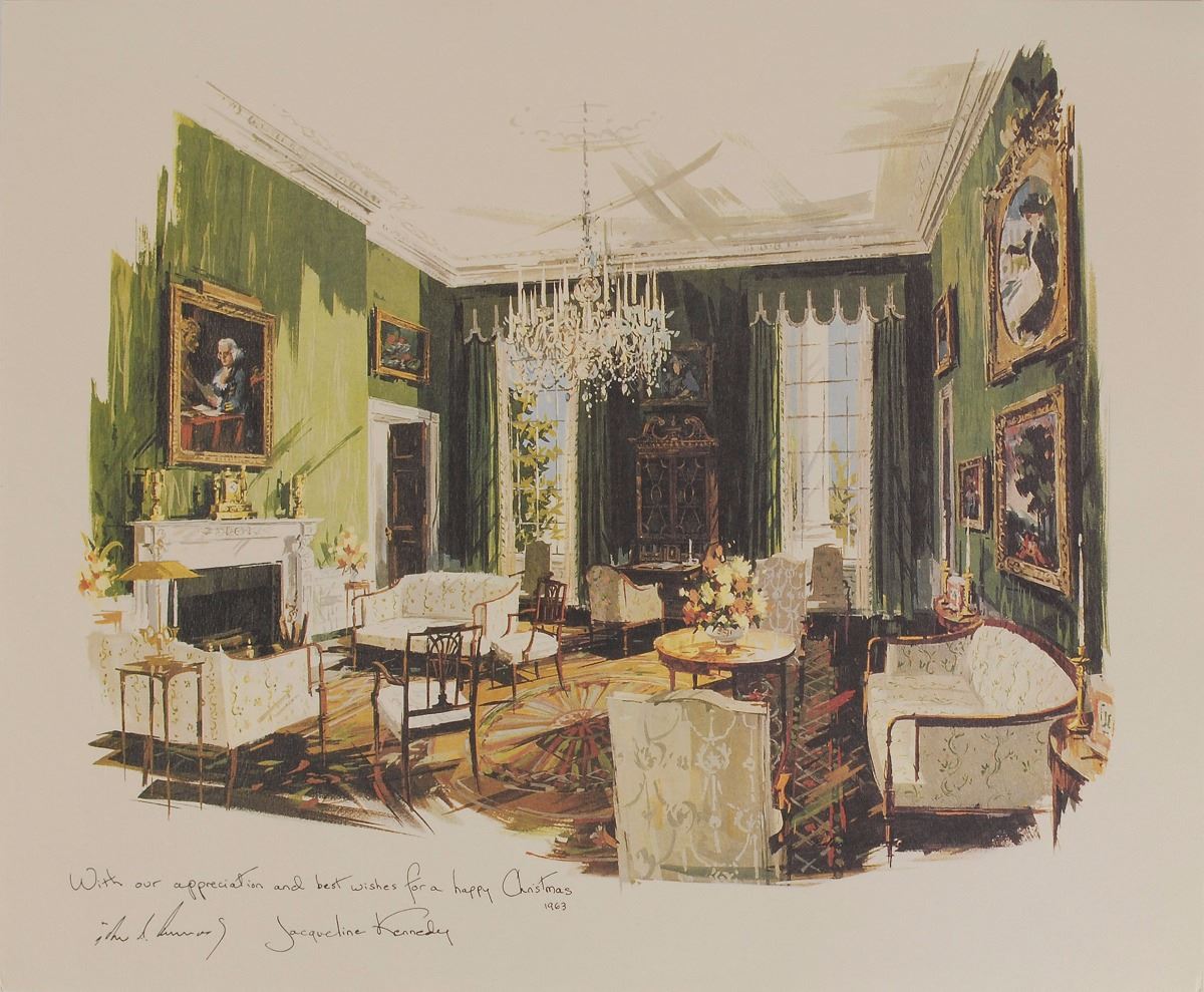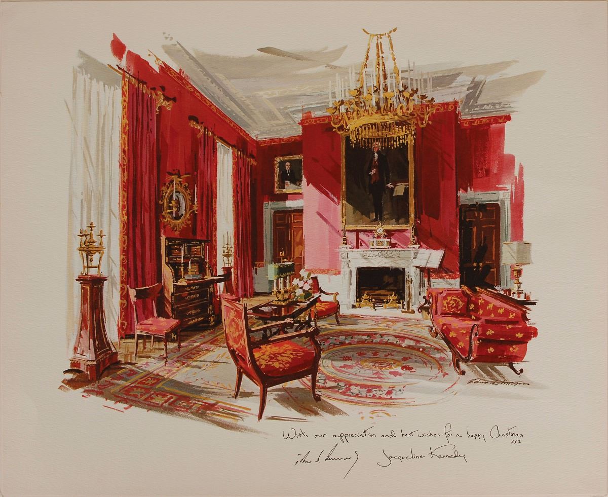 Three desirable official oversized Christmas cards from the Kennedy White House, 17 x 14, including two cards from 1962 and one from 1963, all bearing pre-printed facsimile signatures of the president and first lady in the image. In overall very good to fine condition, with overall staining to one of the 1962 cards.