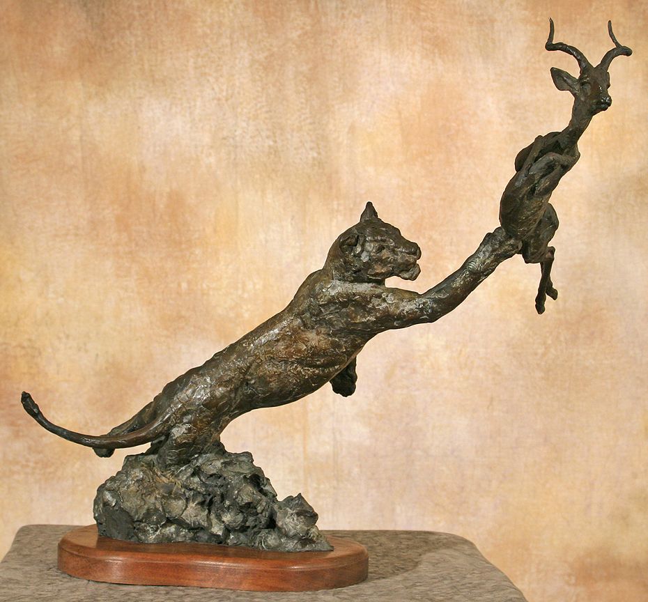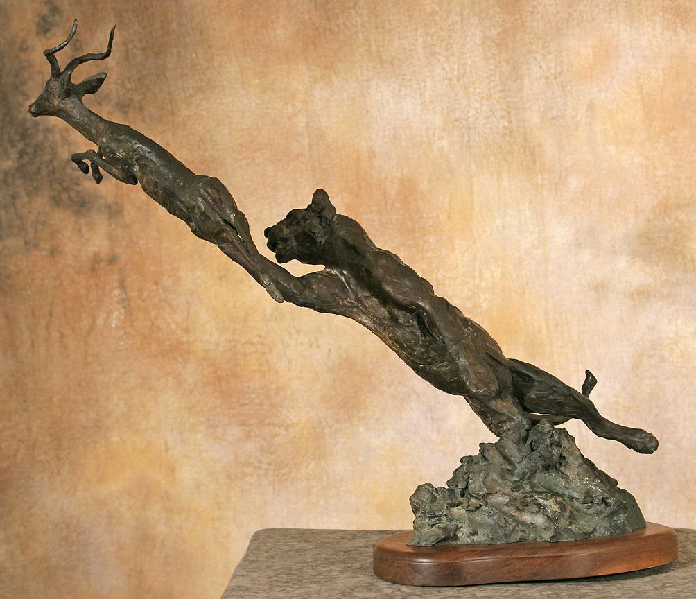 Kenneth Bunn (b. 1938). Lioness & Impala. 22" x 26" x 14" bronze. Inscribed: © BUNN. (est. $6,000-9,000). CONDITION REPORTS: www.auctioninsantafe.com/docs/cr2012.pdf
